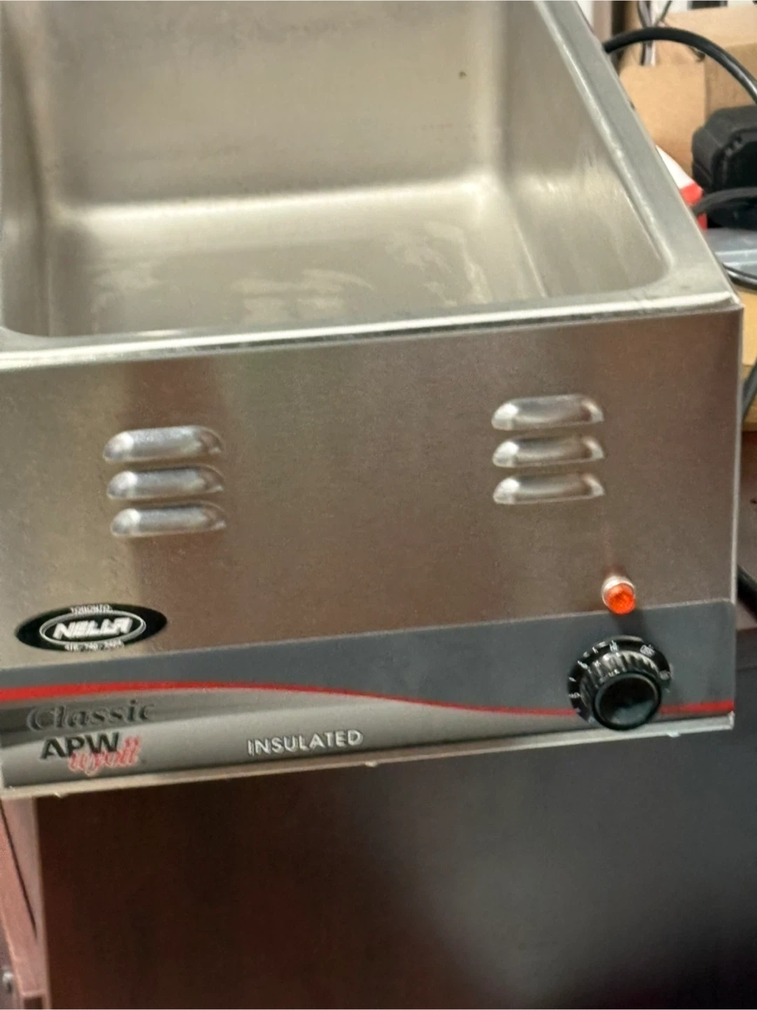 I have a Cuisinart warming tray and an APW Wyott food warmer for sale! Both are in good working condition. The Cuisinart warming tray features a large glass warming surface, and the APW Wyott is insulated to keep food warm for longer