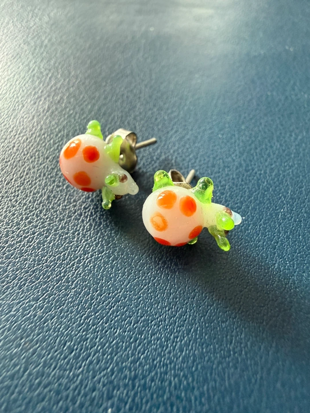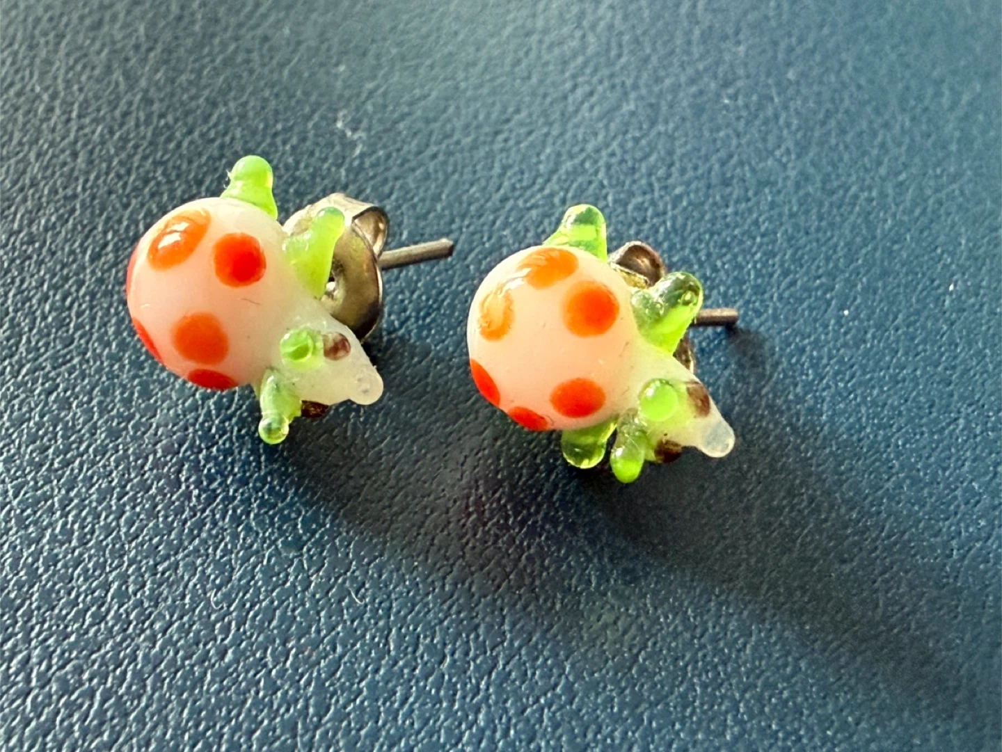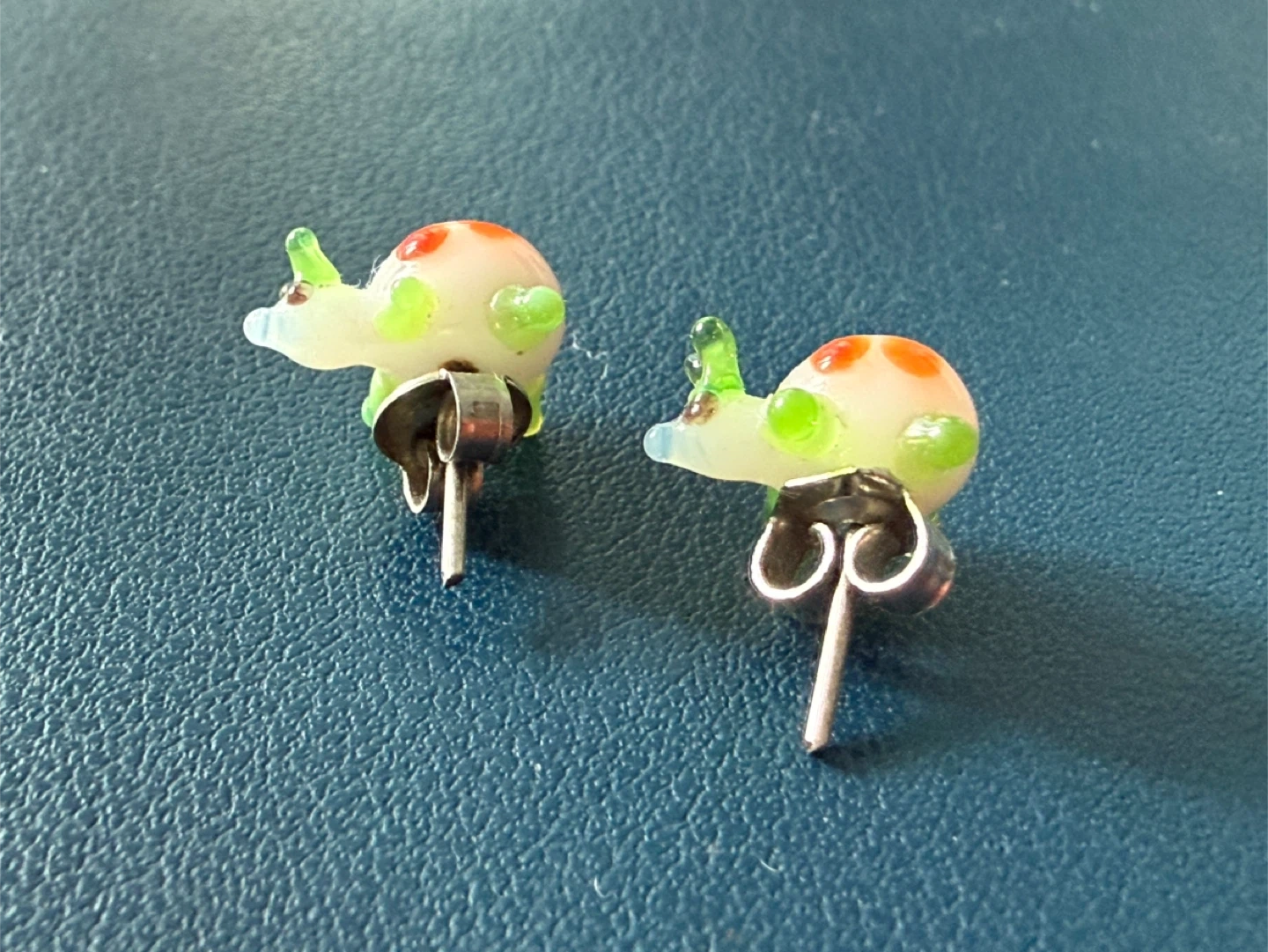 Cute glass snail stud earrings.