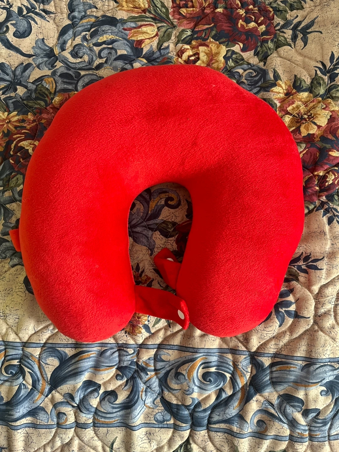 Selling a comfy travel neck pillow! It's a bright yellow and red