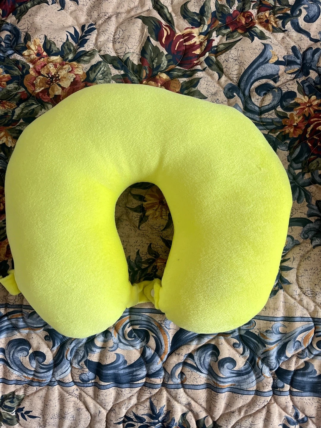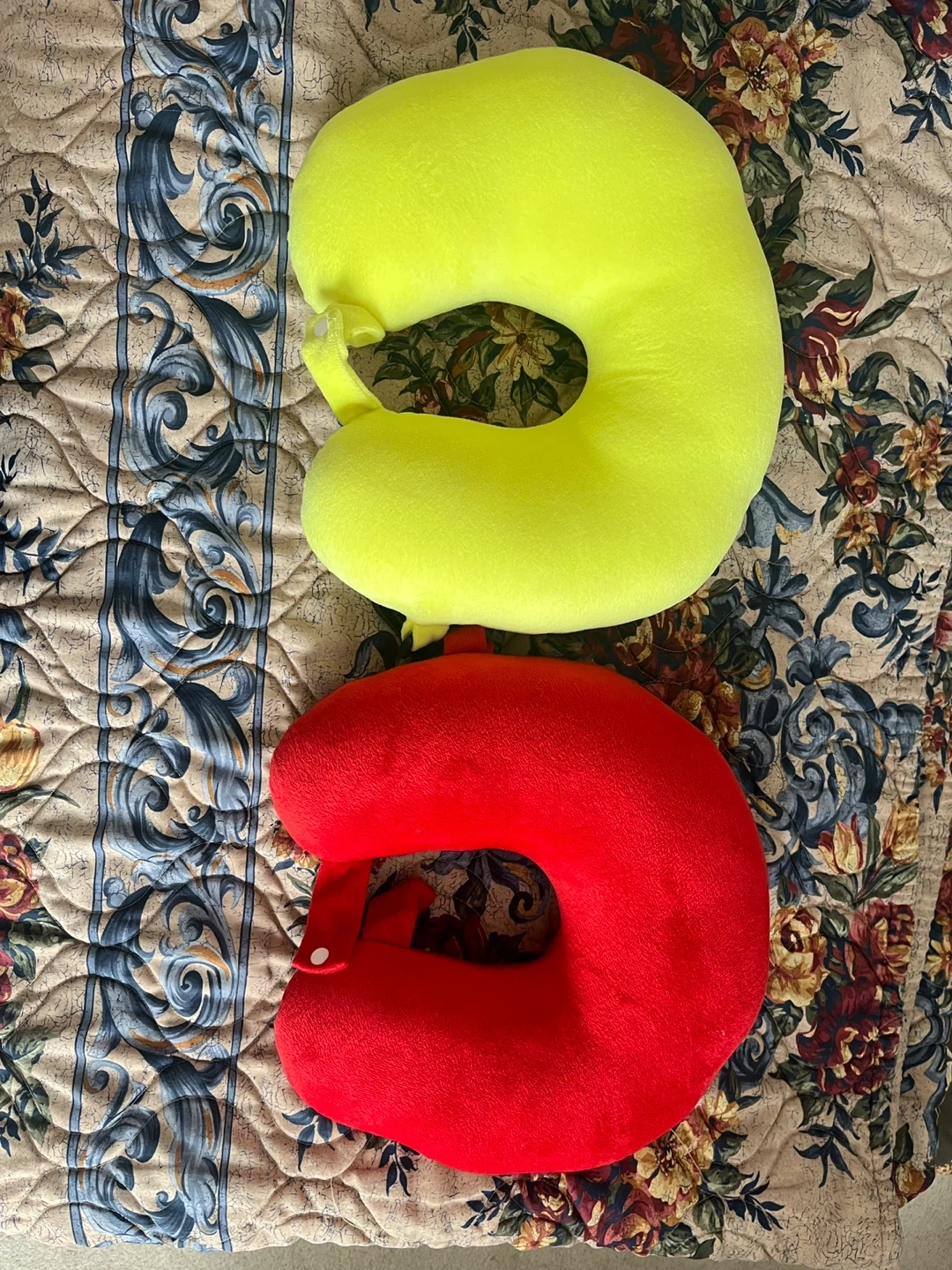 Selling a comfy travel neck pillow! It's a bright yellow and red