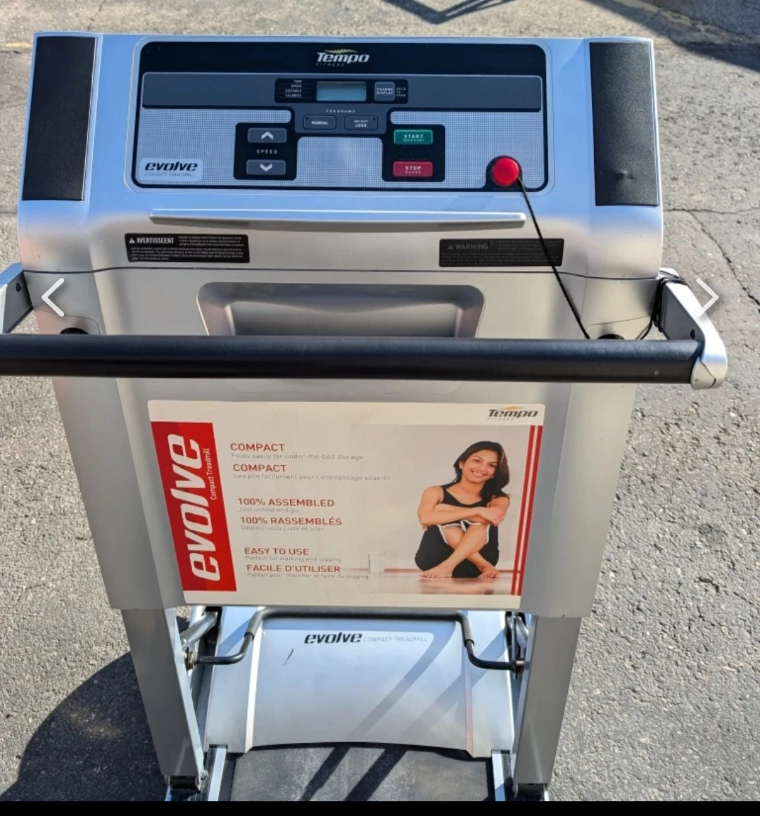 Tempo Evolve fold-away treadmill is an ultra-compact unit that fits the smallest workout spaces. It folds into a 10 x 59" compact frame for easy under-bed or closet storage. Treadmill uses a 1.25 CHP motor for smooth power at all speeds.