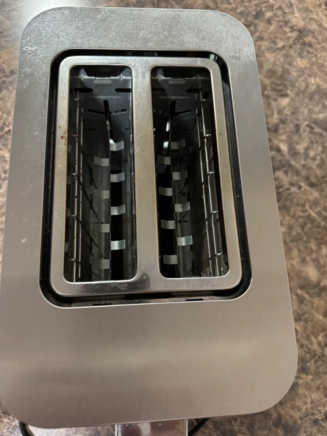 This Salton toaster has a brushed stainless steel finish and two slots for bread. It features a crumb tray for easy cleaning. Simple to use for your morning toast!