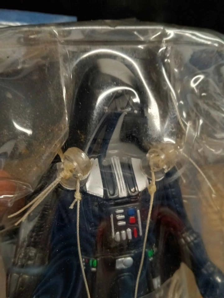 Collectible Darth Vader kite figure still in original plastic packaging. Includes assembly instructions and flying string. Figure is made of molded plastic with classic black and silver character details.