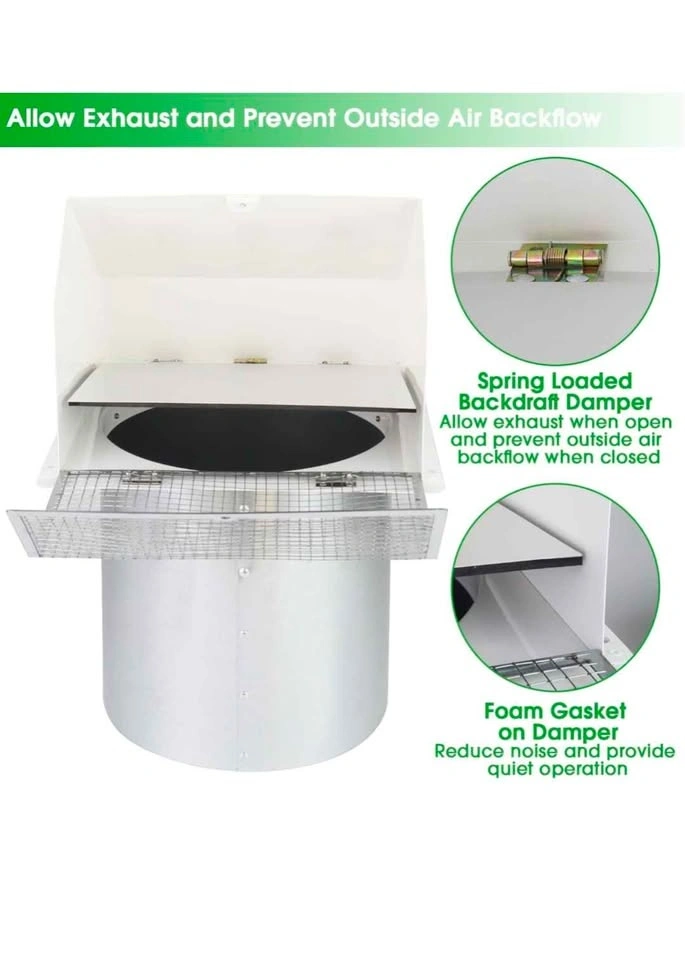 6" Hooded Wall Vent with Screen and Damper,Wall Exhaust Vent Cover Cap,Dryer Vent Cover Outside,Exterior Wall Vent Hood Outlet Air Vent for Kitchen Range Hood Air Ventilation,Galvanized Steel,White