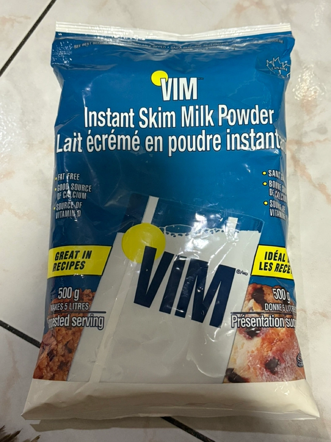 Selling a bag of Vim Instant Skim Milk Powder! It's a great source of calcium and vitamin D, plus it's fat-free. Perfect for adding to your favourite recipes. The bag contains 500g, which makes 5 litres of milk.