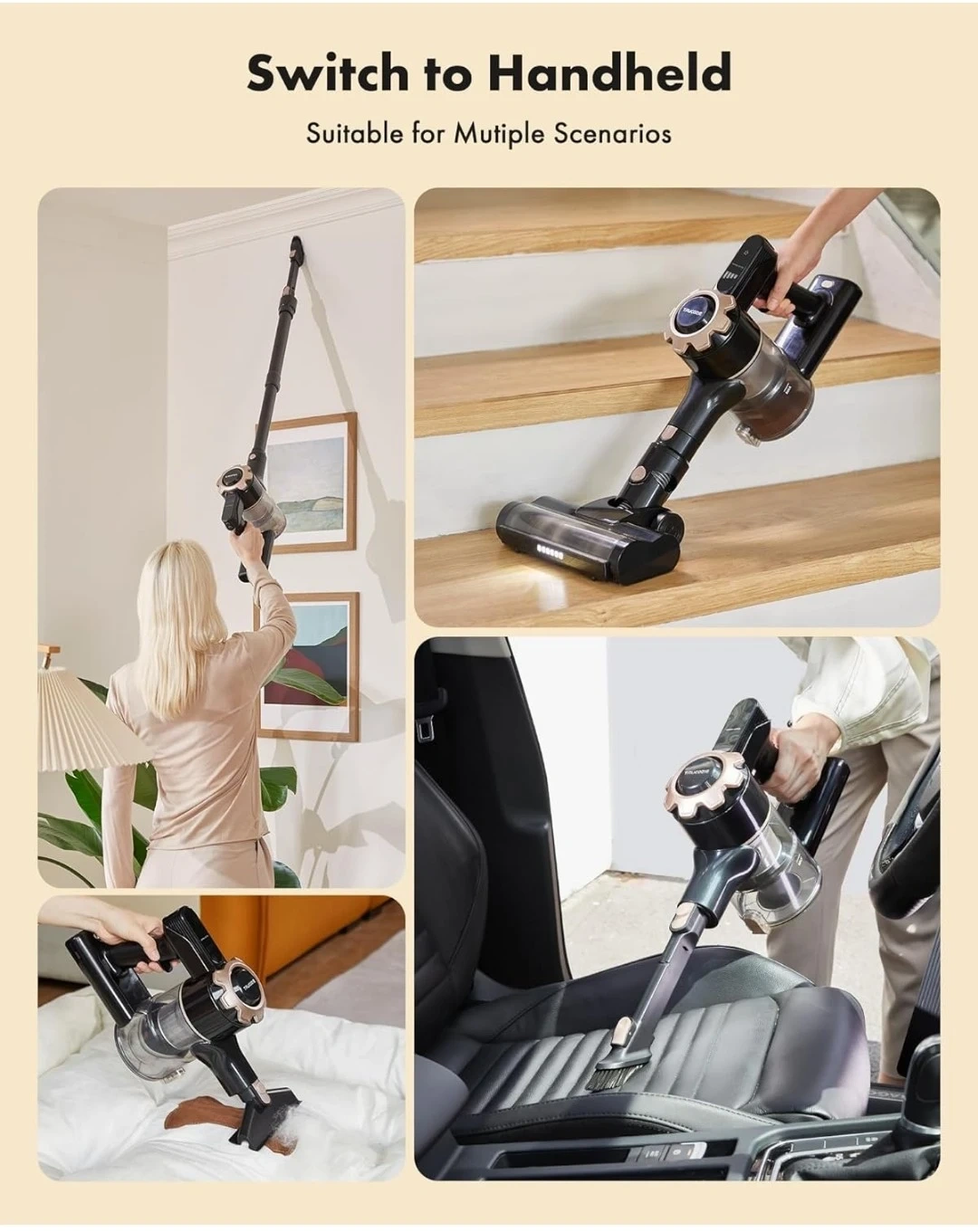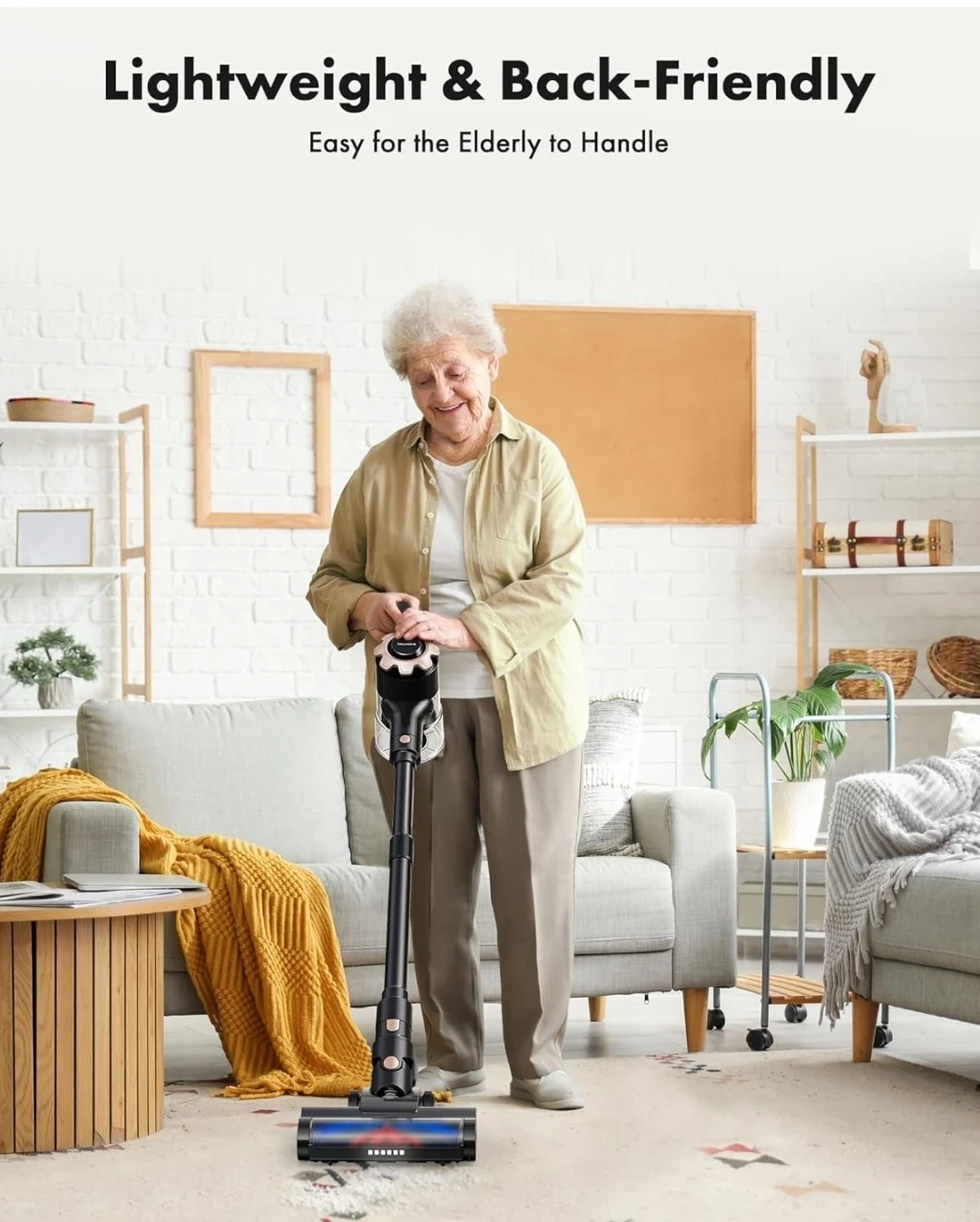 Uninterrupted home cleaning with up to 45 minutes of battery life. Lightweight and back-friendly, it's easy for the elderly to handle. Features powerful cyclonic suction and 5 stage filtration. Suitable for multiple scenarios, including stairs and cars.