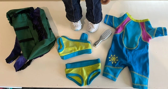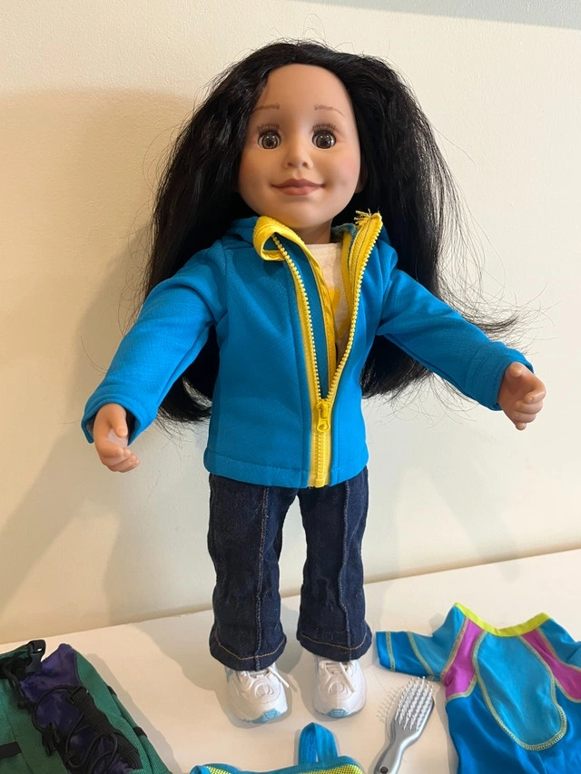 18" MaplLea Doll Alexi (Toronto) Includes original outfit + backpack, swim suite & wet suit. Story Journal included however used sections removed.