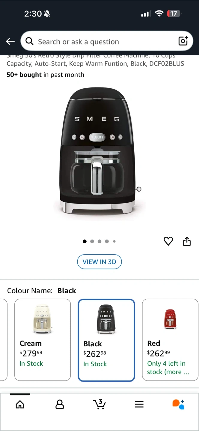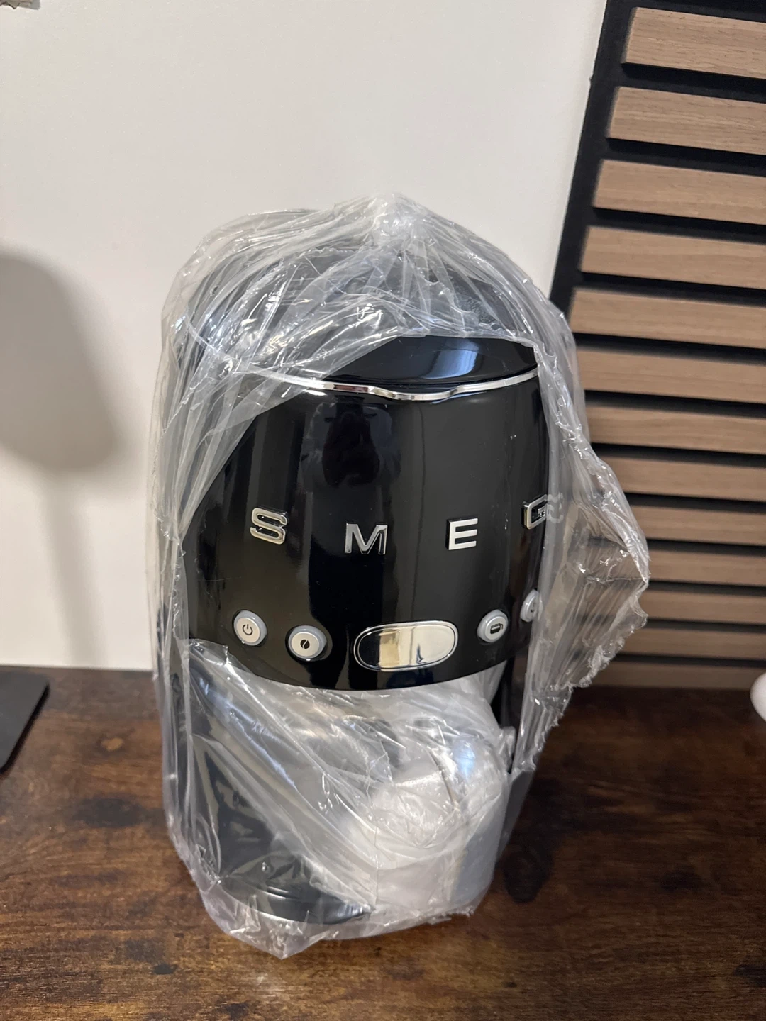 Selling a Smeg 50's Retro Style Drip Filter Coffee Machine in black. It has a 10-cup capacity, auto-start, and keep-warm function. This stylish coffee maker would look great in any kitchen!