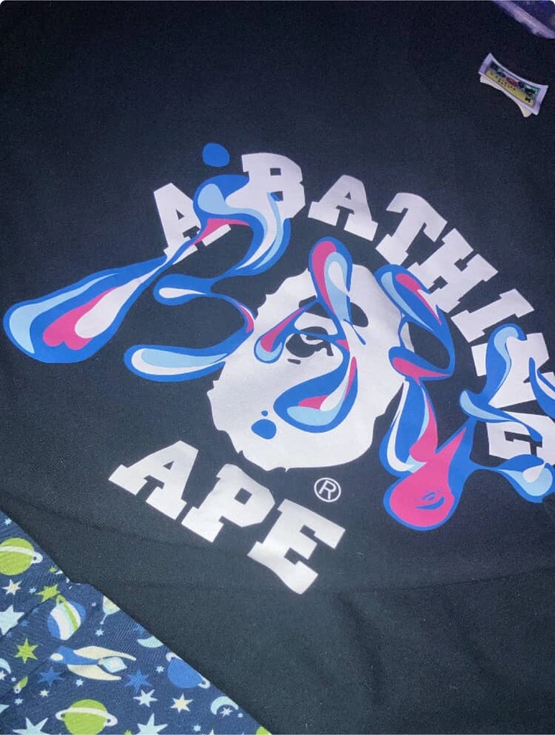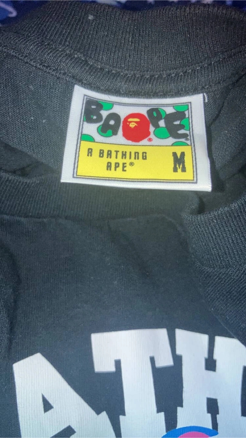 Selling a black A Bathing Ape (BAPE) tee in size M. The shirt features a cool design with the BAPE logo. Perfect for casual wear!