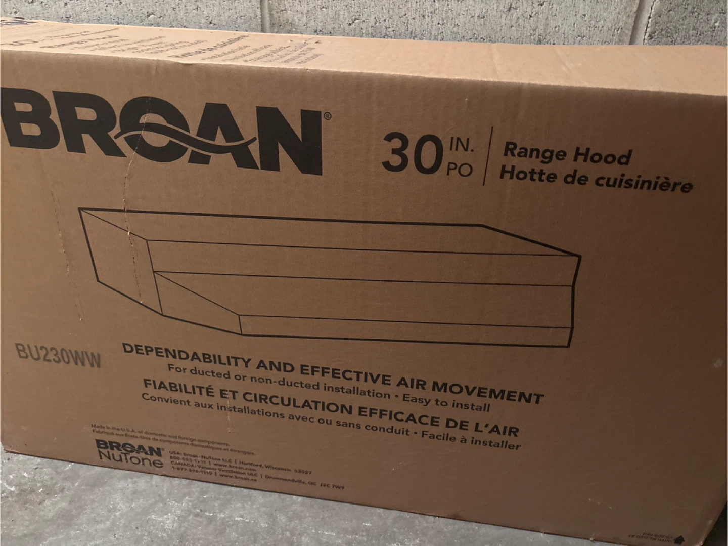This is a 30-inch Broan range hood. It's designed for ducted or non-ducted installation and is easy to install. Features bright 75-watt cooktop lighting, but the bulb is not included.