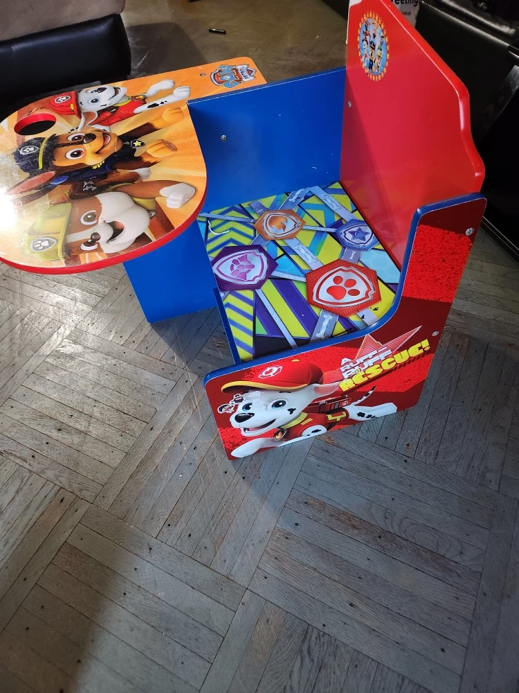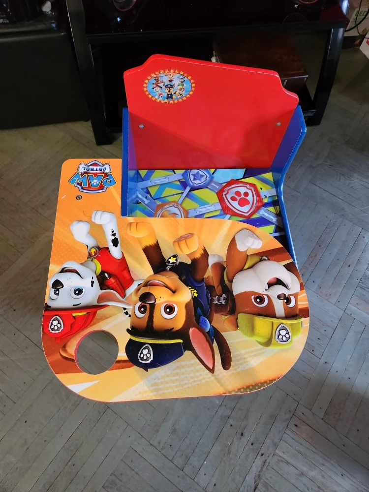 Here's a fun Paw Patrol themed desk and chair set for your little one! It features favorite characters and bright colors. It also has a storage bin underneath the seat for toys or books.