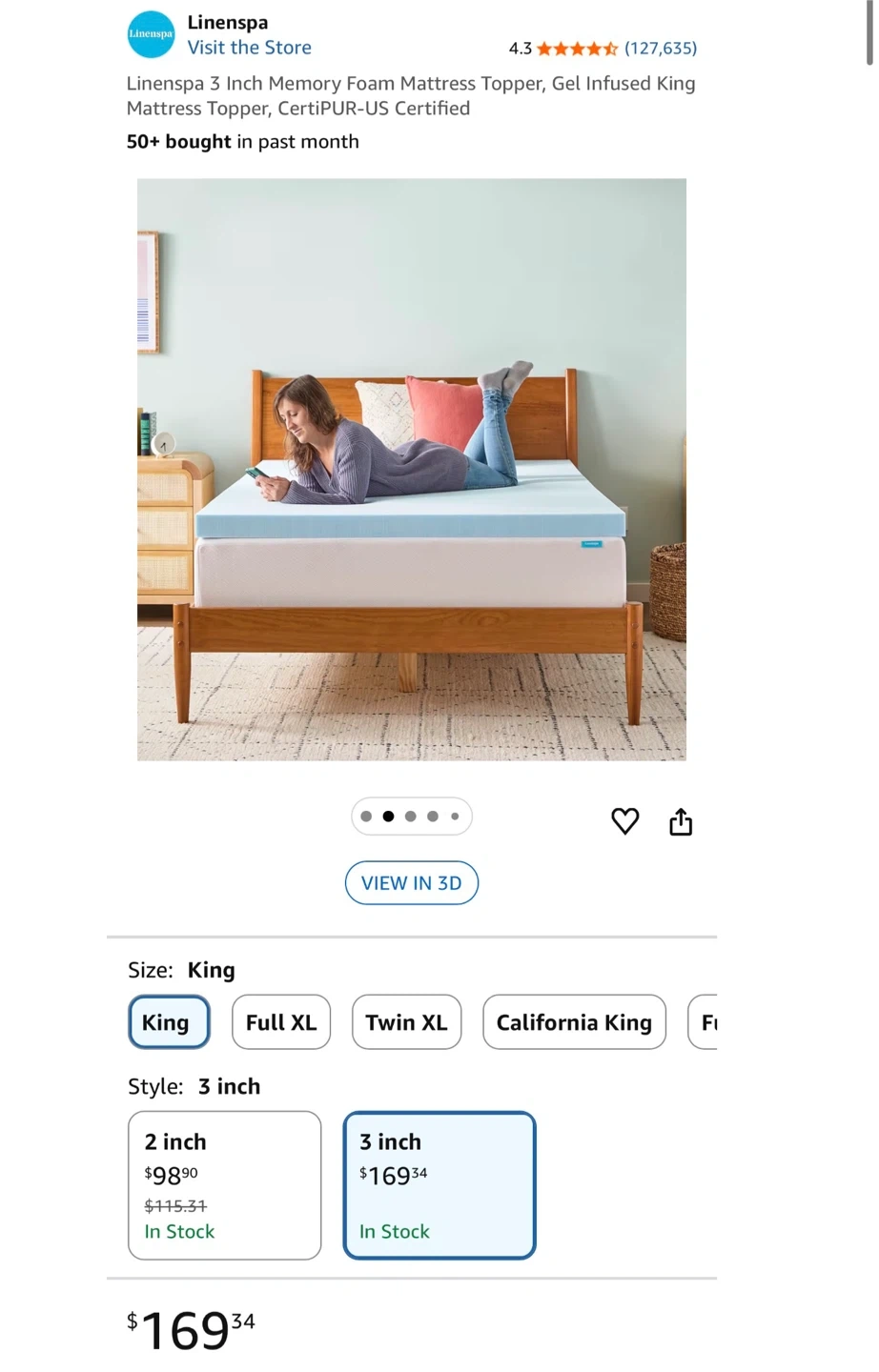 Linenspa King 3 Inch Memory Foam Mattress Topper