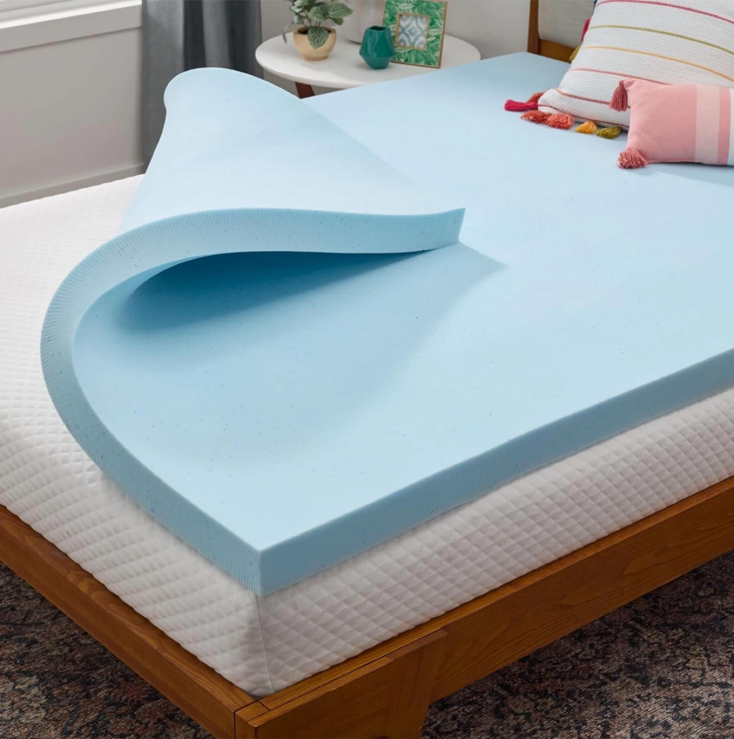 This 3-inch gel-infused memory foam mattress topper is CertiPUR-US Certified. Cool gel infusions help regulate temperature while you sleep. It relieves pressure points for a more comfortable rest. This topper adds a plush layer to your existing mattress.