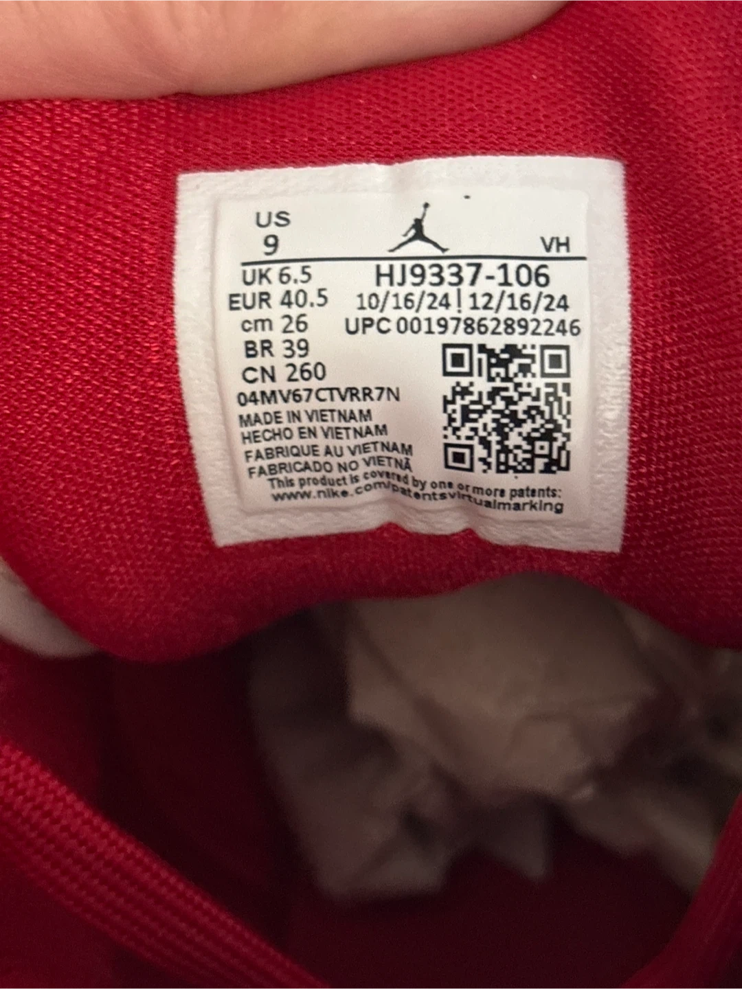 Women's Air Jordan 1 Mid SE sneakers in a Sail and Varsity Red colorway. Size US 9 (UK 6.5, EUR 40.5, CM 26). Includes original box. These shoes offer a classic mid-top silhouette with a distinctive color combination.