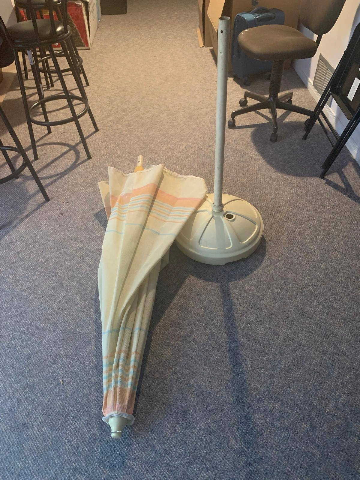 Excellent condition patio chairs and matching umbrella. The table isn't available