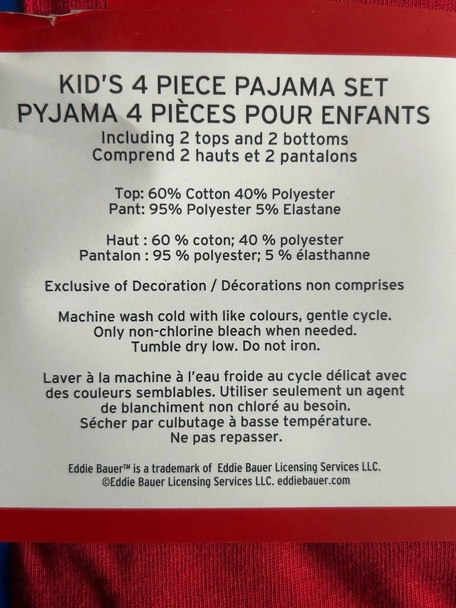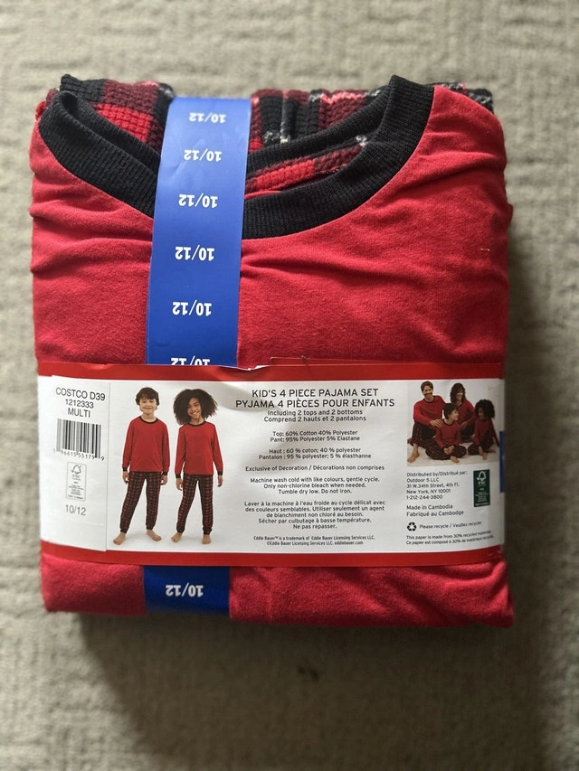 Brand new set of Eddie Bauer kids' 4-piece pajamas, perfect for cozy nights! This set includes 2x long-sleeved red tops and 2x plaid bottoms. The set is new, complete with tags.