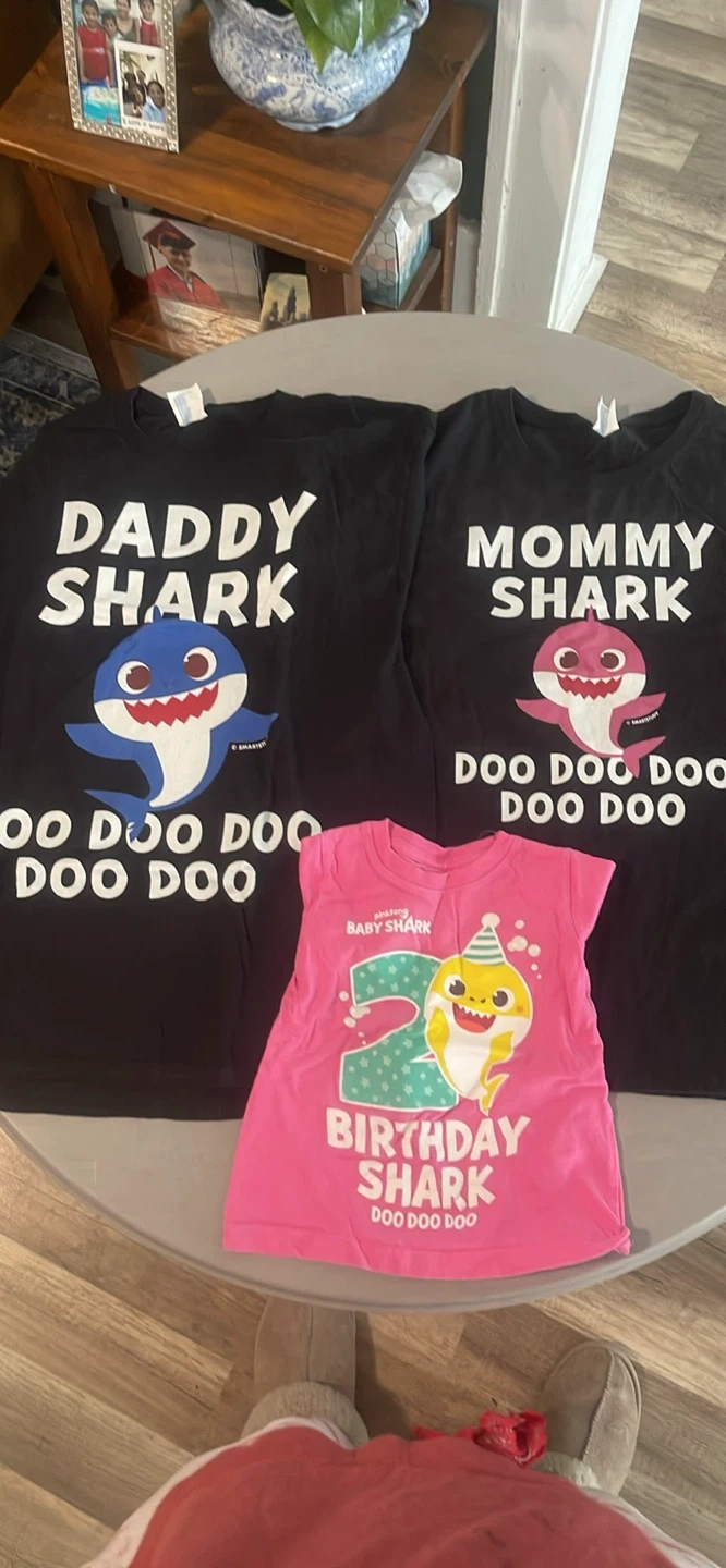 Celebrate a 2nd birthday with this "Baby Shark Birthday" shirt! Features the popular Baby Shark character and "Doo Doo Doo." Made from soft fabric for comfort.