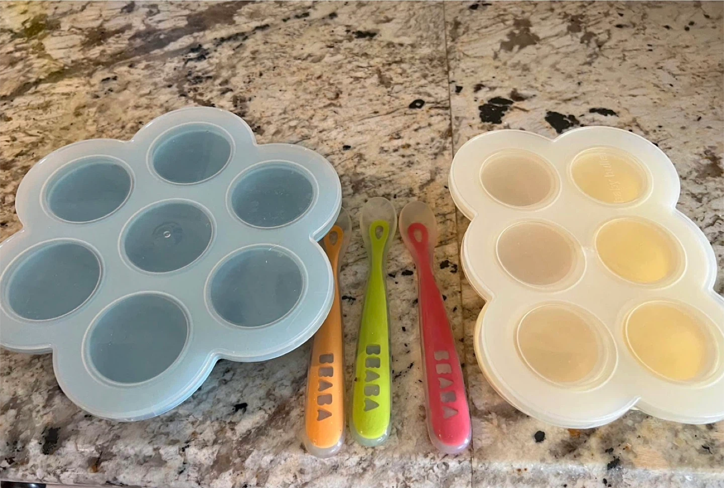 Selling a set of Beaba baby food storage containers and spoons. Includes two containers and three spoons. Great for starting solids!