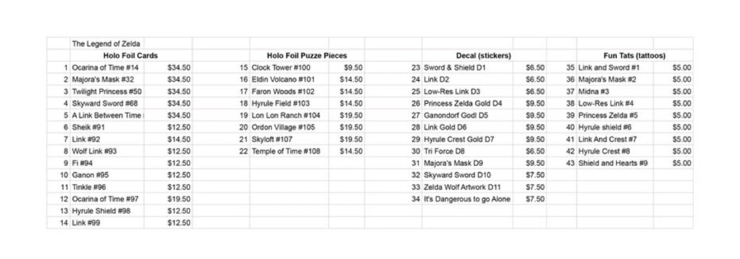 Selling my collection for extra cash and getting into Magic: The Gathering. All cards shown in the images are available individually, (Everything valued at $560, will sell all for $450). The prices are listed in the final photo.