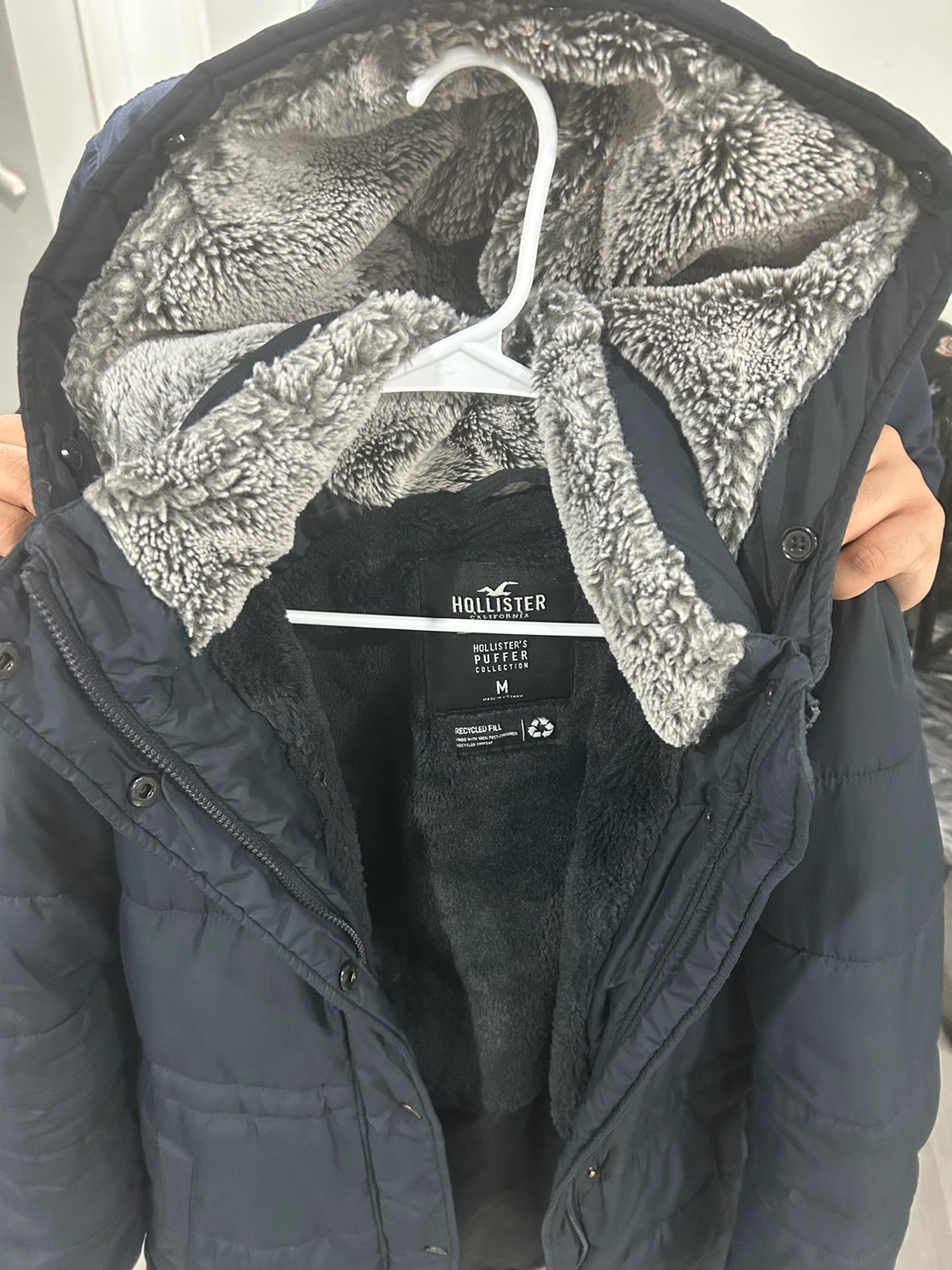 Hollister puffer collection winter jacket with fleece inside and in the pockets too