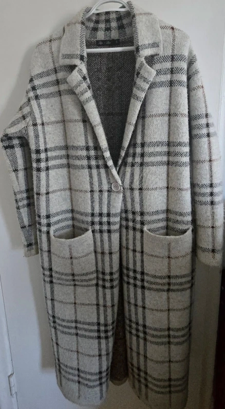 Selling a Life She long plaid coat in a size small, but fit oversize! It's in excellent conditions, very warm and perfect for the cooler months. The coat features a stylish plaid pattern and convenient pockets. Extra bottom.