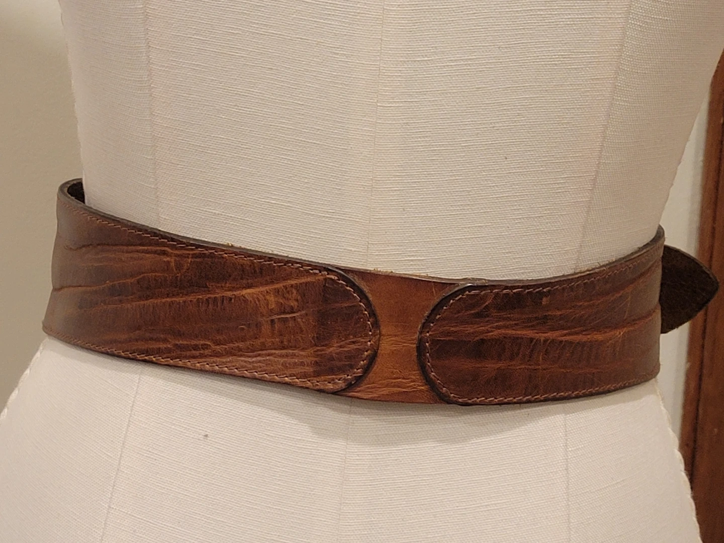 A stylish brown leather belt from Brave. Made in Canada, size 30. Features a distinctive textured finish and a brass-toned buckle. This belt adds a unique touch to any outfit! Pickup location eglinton and dufferin