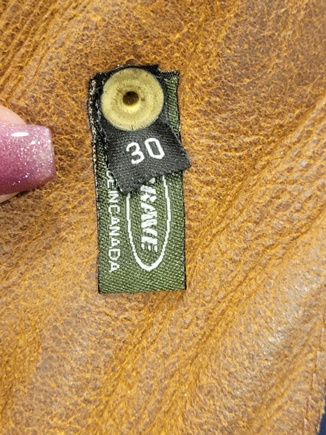 A stylish brown leather belt from Brave. Made in Canada, size 30. Features a distinctive textured finish and a brass-toned buckle. This belt adds a unique touch to any outfit! Pickup location eglinton and dufferin