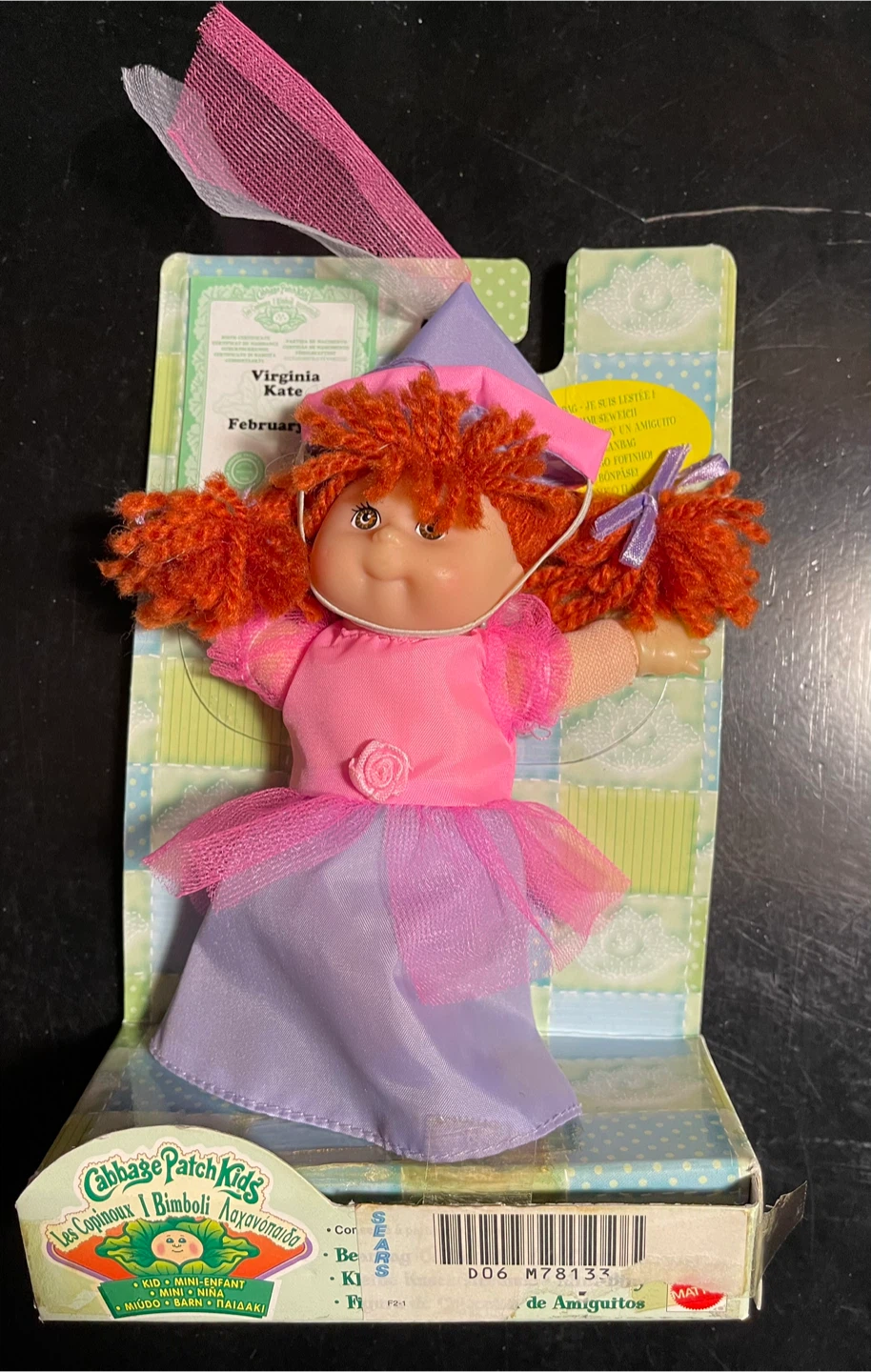 This is a Cabbage Patch Mini Kids doll named Virginia Kate, still in its original packaging! It's a collectible beanbag doll, perfect for ages 3+