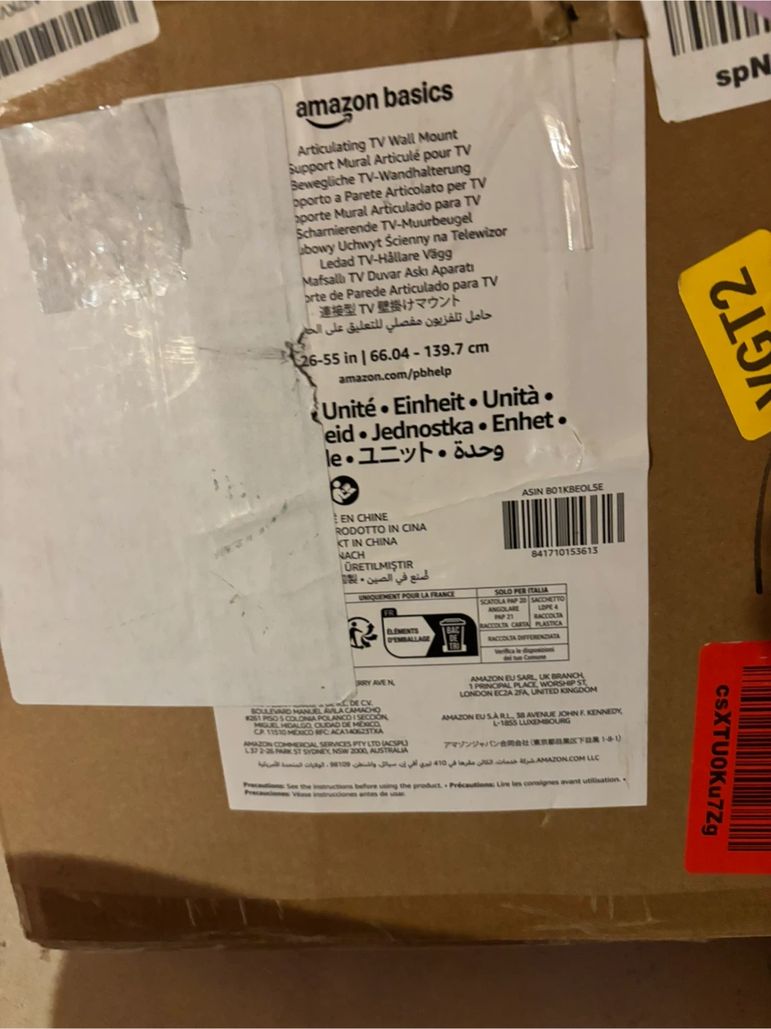 This is an Amazon Basics full motion articulating TV wall mount. It's VESA compatible and suitable for TVs from 66 cm to 140 cm. It supports flat panels up to 36.3 kg.