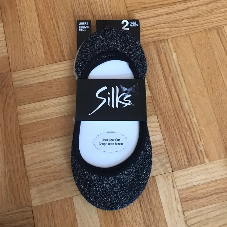 - 2 pair of no show socks with metallic thread for some extra shine (black & tan - one size)