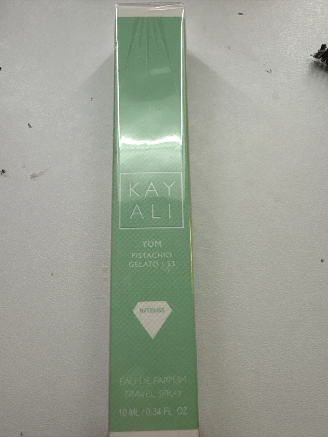 Selling a Kayali Yum Pistachio Gelato 33 travel spray! It's an eau de parfum in a 10 mL / 0.34 fl oz size. Perfect for trying out a new scent or keeping in your bag for on-the-go freshness