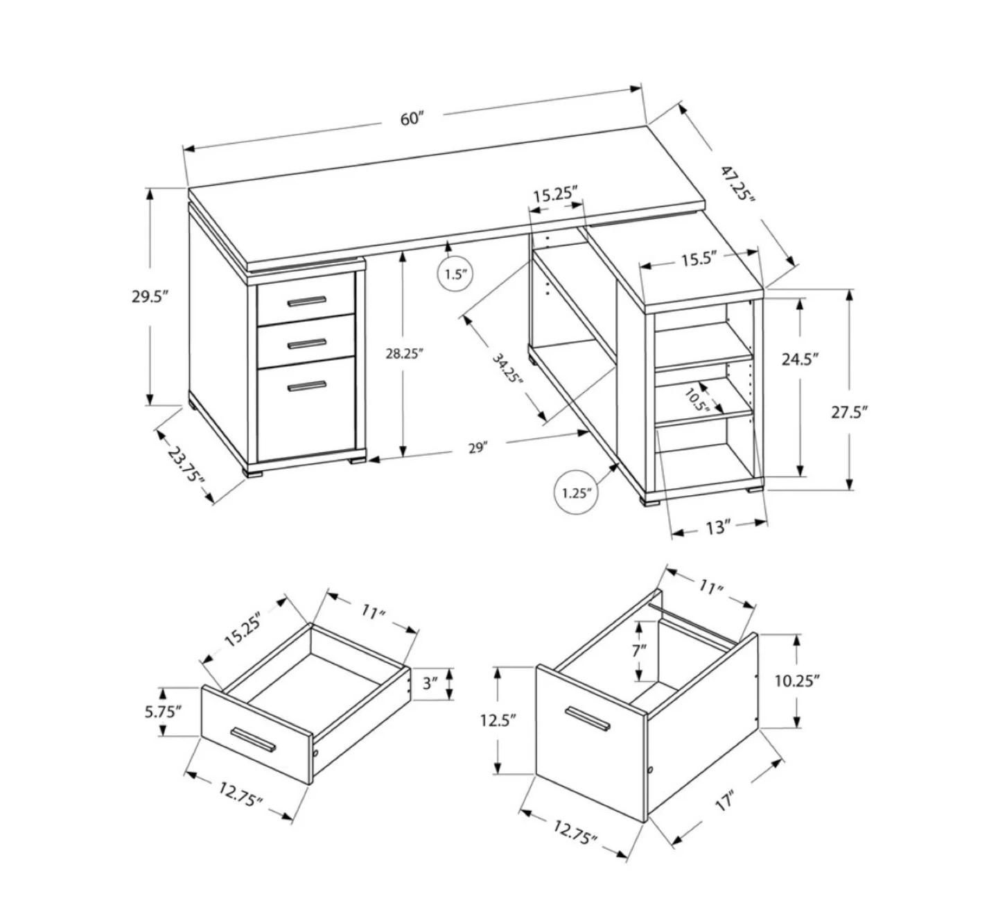 L-Shaped Computer Desk with Storage