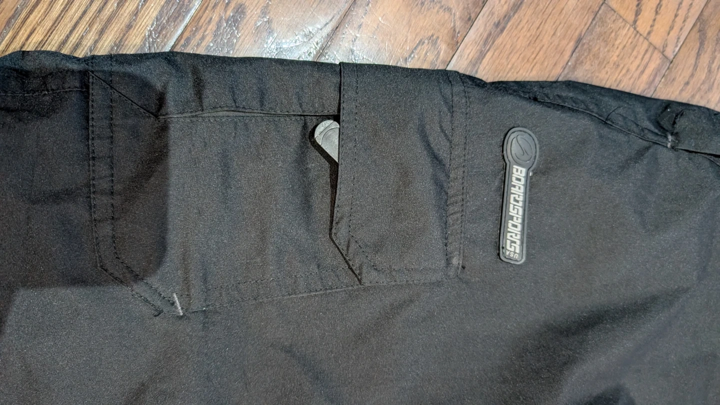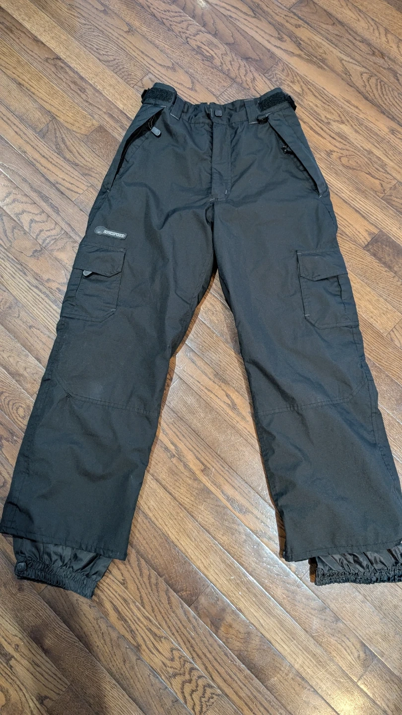 Board Sports snow pants in black. These pants have cargo pockets and adjustable waistbands. Size is 14/16. Made for Canada/USA.