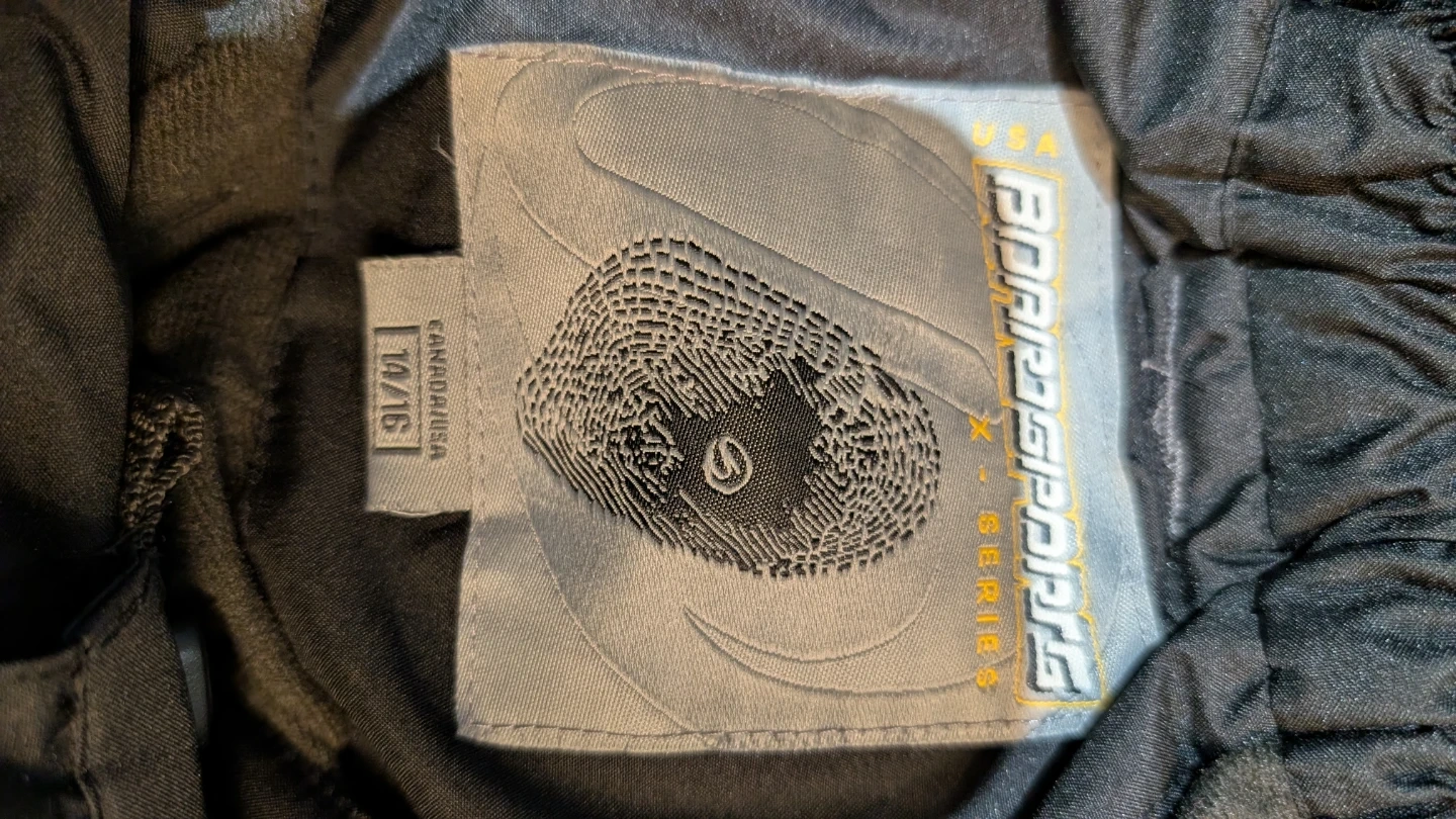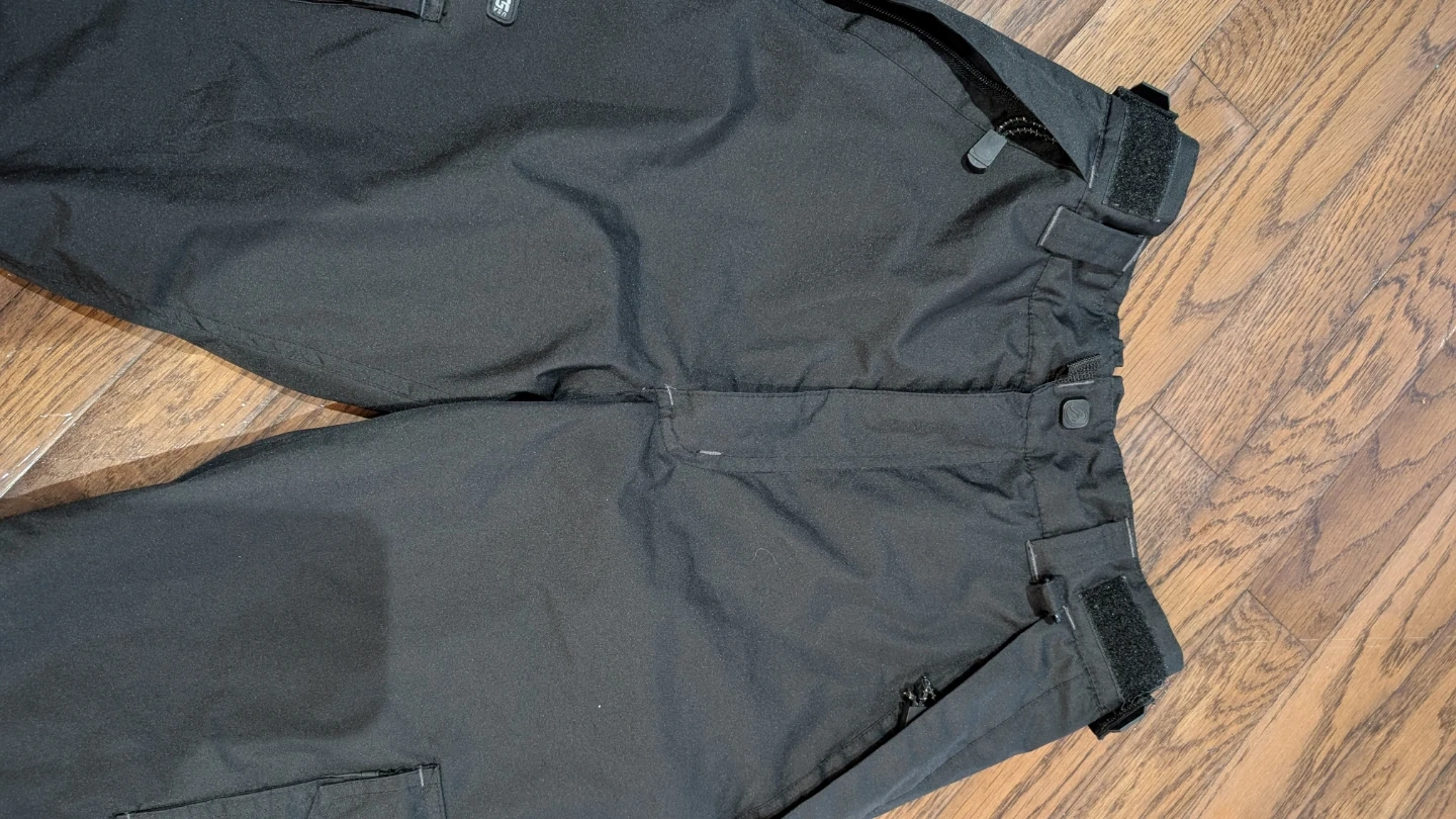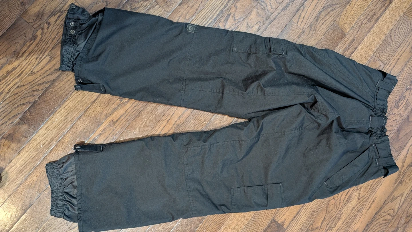 Board Sports snow pants in black. These pants have cargo pockets and adjustable waistbands. Size is 14/16. Made for Canada/USA.