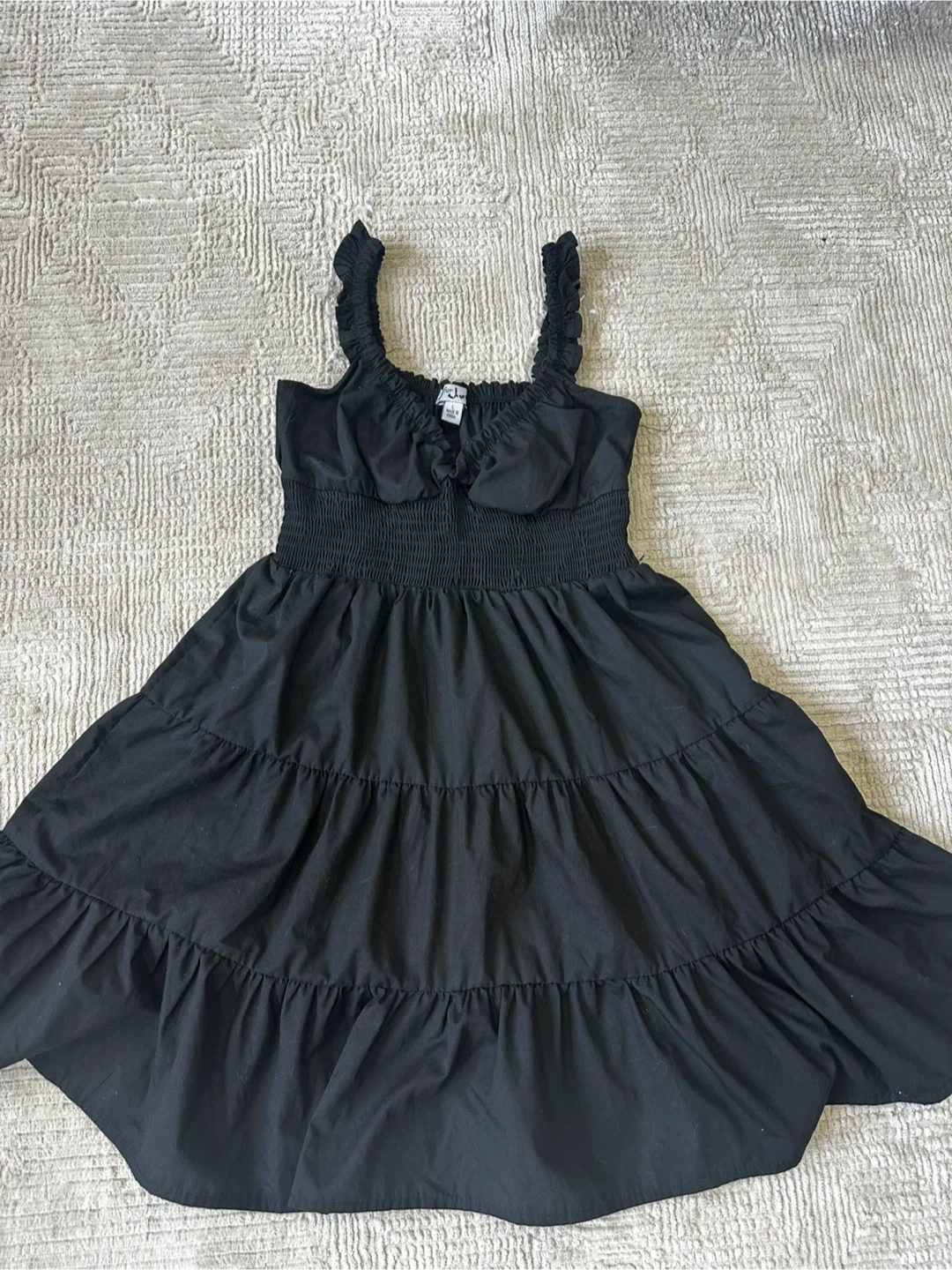 Black Smocked Tiered Dress with Ruffles