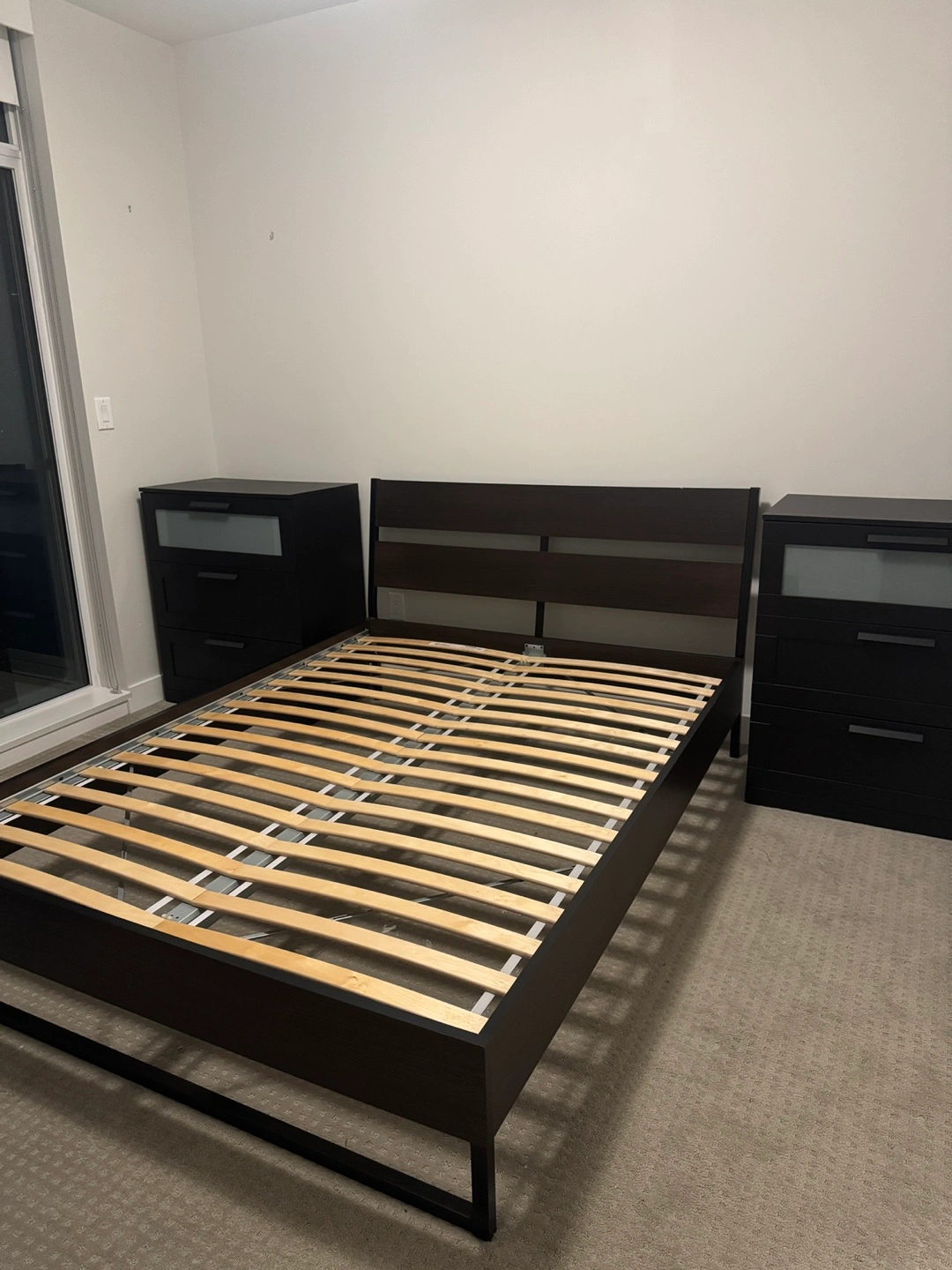 IKEA Trysil Queen Size Bed Frame and 2 IKEA Brimnes Dressers