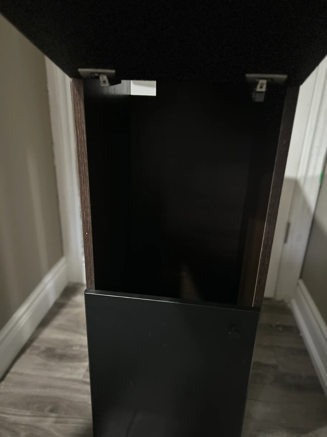 Selling a black wood storage cabinet. It's in great shape and perfect for adding some extra storage space to any room in your home!