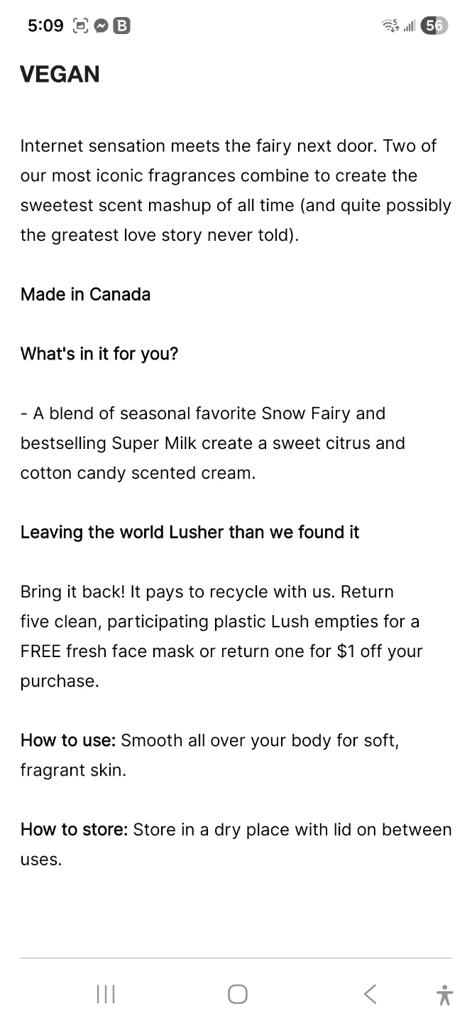 Internet sensation meets the fairy next door with this sweet citrus and cotton candy scented cream. It's made in Canada and offers soft, fragrant skin. Store in a dry place with lid on between uses.