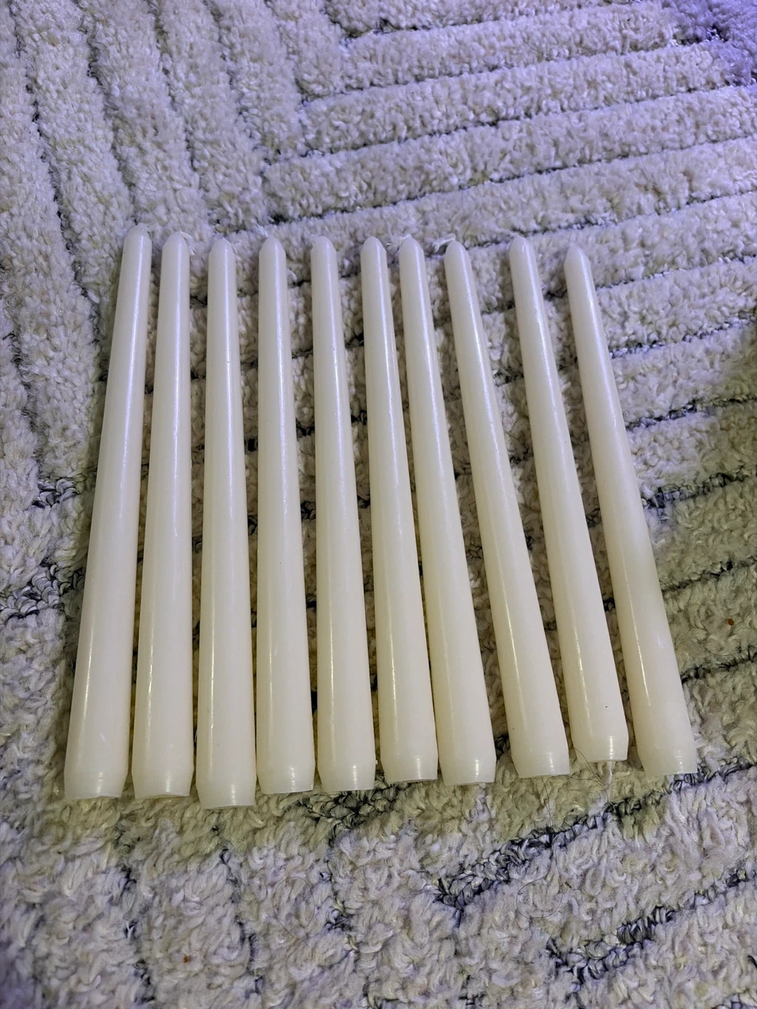 11 taper candles in an ivory colour. They're dripless and unscented, offering 8 hours of burn time. Perfect for setting a nice mood during dinners or special occasions!