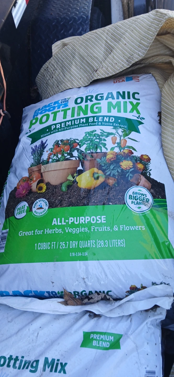 This is an all-purpose organic potting mix, premium blend. It's great for herbs, veggies, fruits, and flowers. 1 cubic foot (25.7 dry quarts / 28.3 liters).Each one's are $20. I want it gone ASAP as soon as possible.