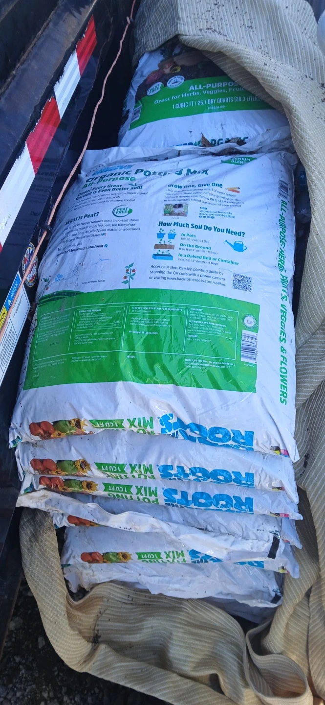 This is an all-purpose organic potting mix, premium blend. It's great for herbs, veggies, fruits, and flowers. 1 cubic foot (25.7 dry quarts / 28.3 liters).Each one's are $20. I want it gone ASAP as soon as possible.