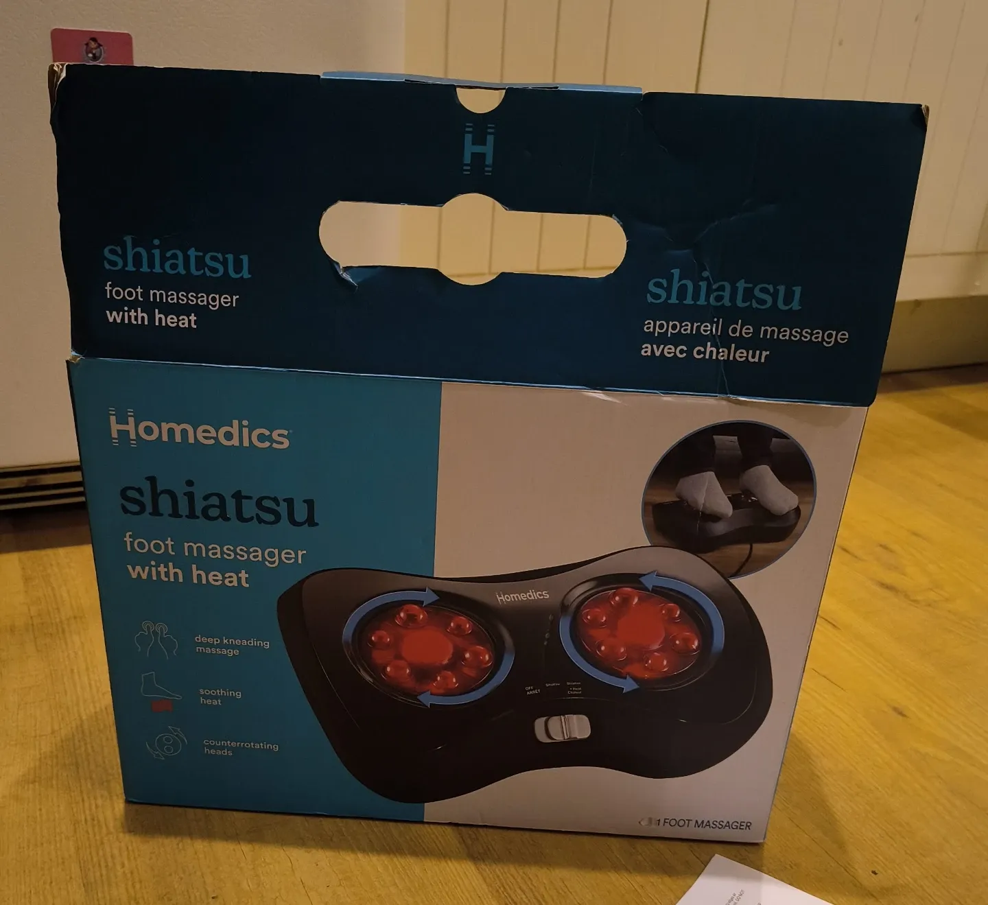 This HoMedics Shiatsu foot massager features counterrotating massage heads for a deep massage. It also includes soothing heat to enhance your experience. It's lightweight and portable, perfect for home or office use!