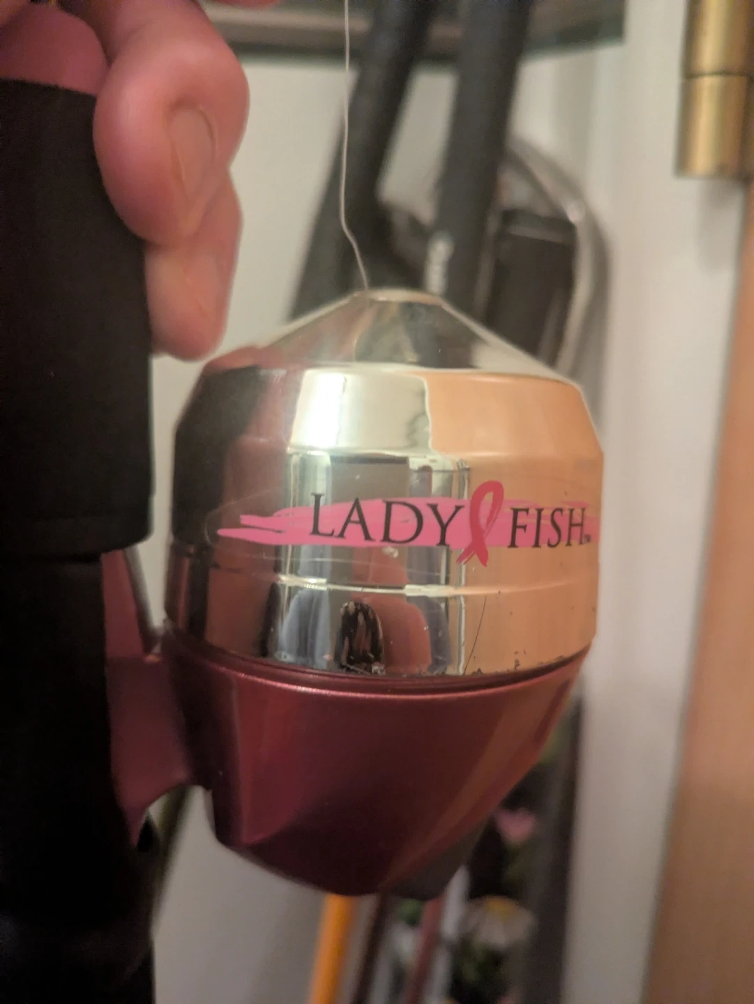 This is a Lady Fish brand fishing rod and reel combo. It's designed for ease of use. Great for beginners getting into fishing!