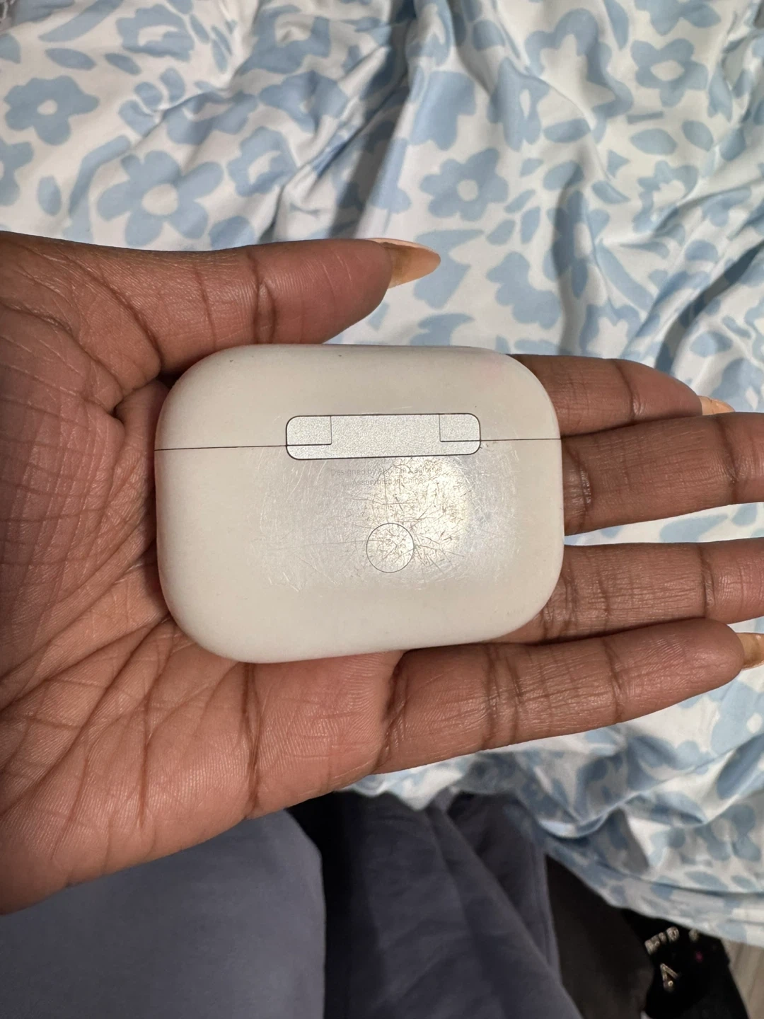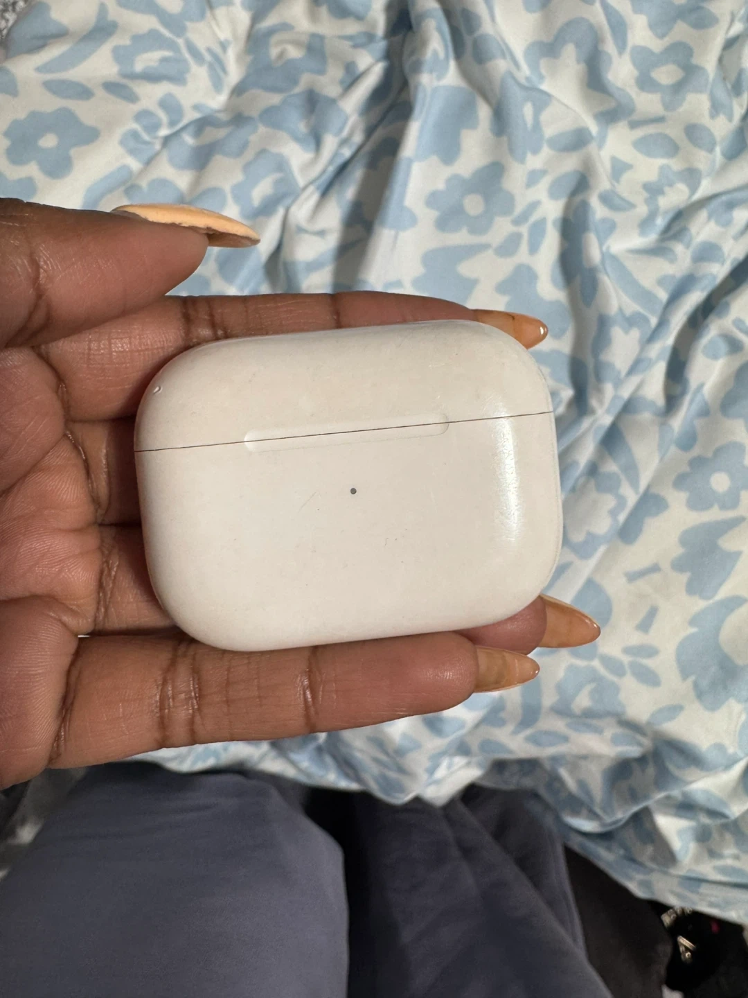 Selling a white charging case for Apple AirPods Pro (2nd Generation). It's the official case, offering wireless charging capabilities. This case is perfect for replacing a lost or broken one. Note: right AirPod only, left is missing.