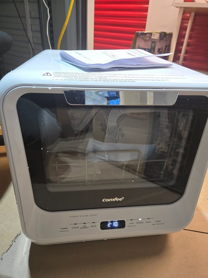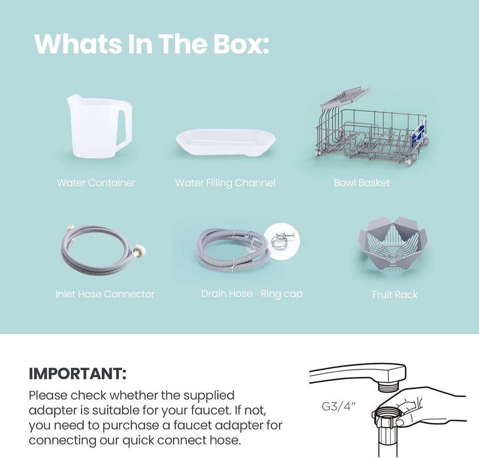 Ultra-Compact Design: Can wash 30+ items (Max to 10" plates) at a time while occupying a small space (16.5 x 17.1 x 17.1 inches), ideal for apartments, small kitchens, dorms, boats, campers& RVs. (Note: COMFEE' dishwashers are tested at the factory before being shipped, so it's normal if your new tabletop dishwasher has some water inside)