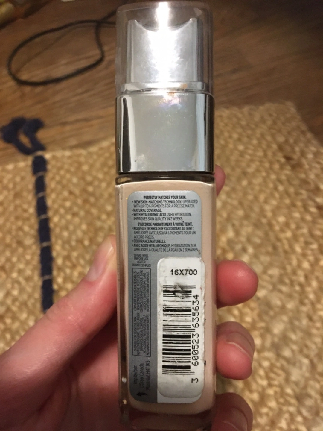 L'Oréal Paris True Match Super-Blendable Foundation. Hydrating formula with hyaluronic acid. Had it for a bit but switched brands, this is like 75% full.
