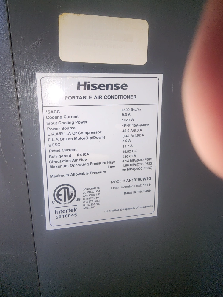 this is a 10,000 btu 6,500 sacc ac. waterless, so no draining. the hookup parts are way better than the one I just bought. I bought this last august, didn't use it till the heatwave that happened this spring, and found out my living room was too big for this to cool down fast. I paid over 400 plus. for it, it does have a remote, but I'm not sure if it works. other than that, it is just like new, used 7 days only