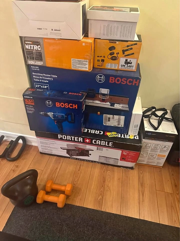 Porter Cable jointer for sale. Used only once, no missing parts. Price is firm. Bosch router has been sold. Bosch cord drill mixer is new for $150. Pick up at 10750 Jane St, Vaughan, ON L6A 3B1.