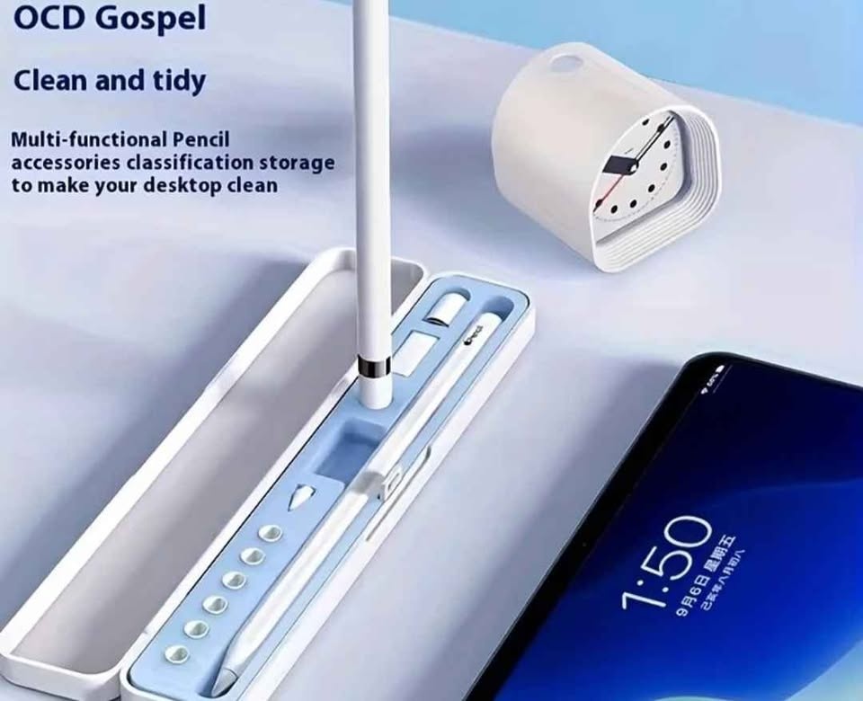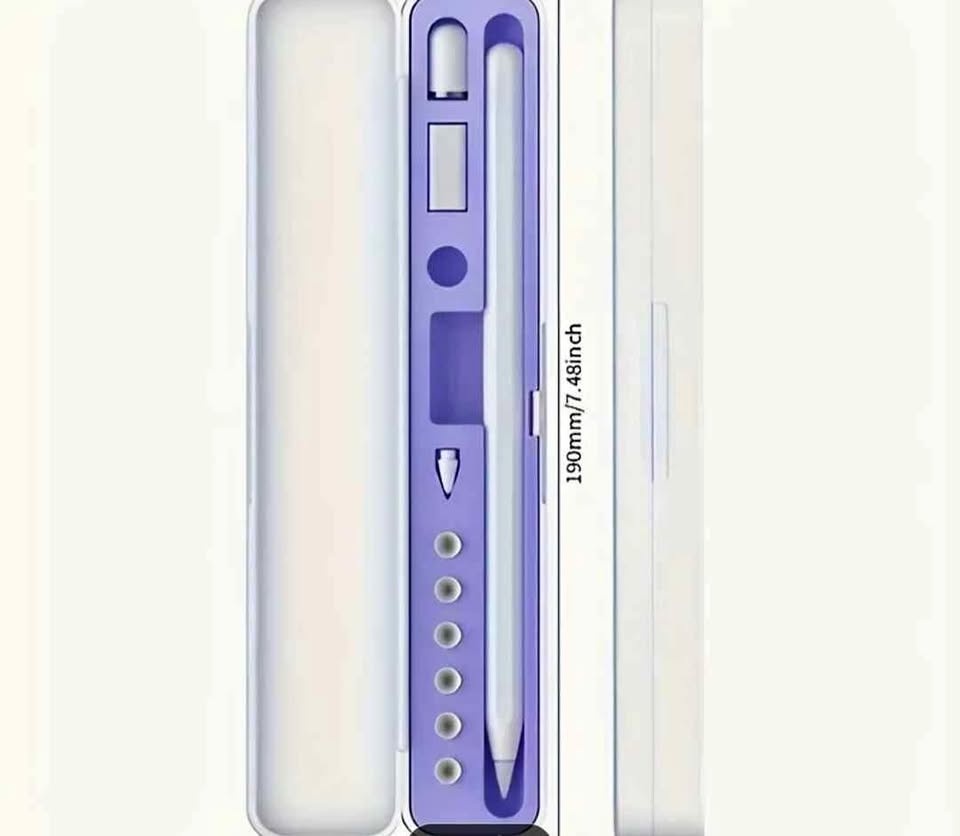 Perfect for students, artists, and professionals. This high-quality storage box is designed to protect your Apple Pencil and keep all its small parts in one place. Features: Compatibility: Works perfectly with Apple Pencil 1st and 2nd Generation. All-in-One Storage: Dedicated slots for the pencil, extra tips, charging adapter, and cap. Premium Quality: Durable hard shell exterior with a soft liquid silicone lining to prevent scratches. Portable & Slim: Lightweight design that fits easily in your laptop bag or backpack. Secure Closure: Features a reliable buckle design for easy opening and closing. Condition: Brand New.