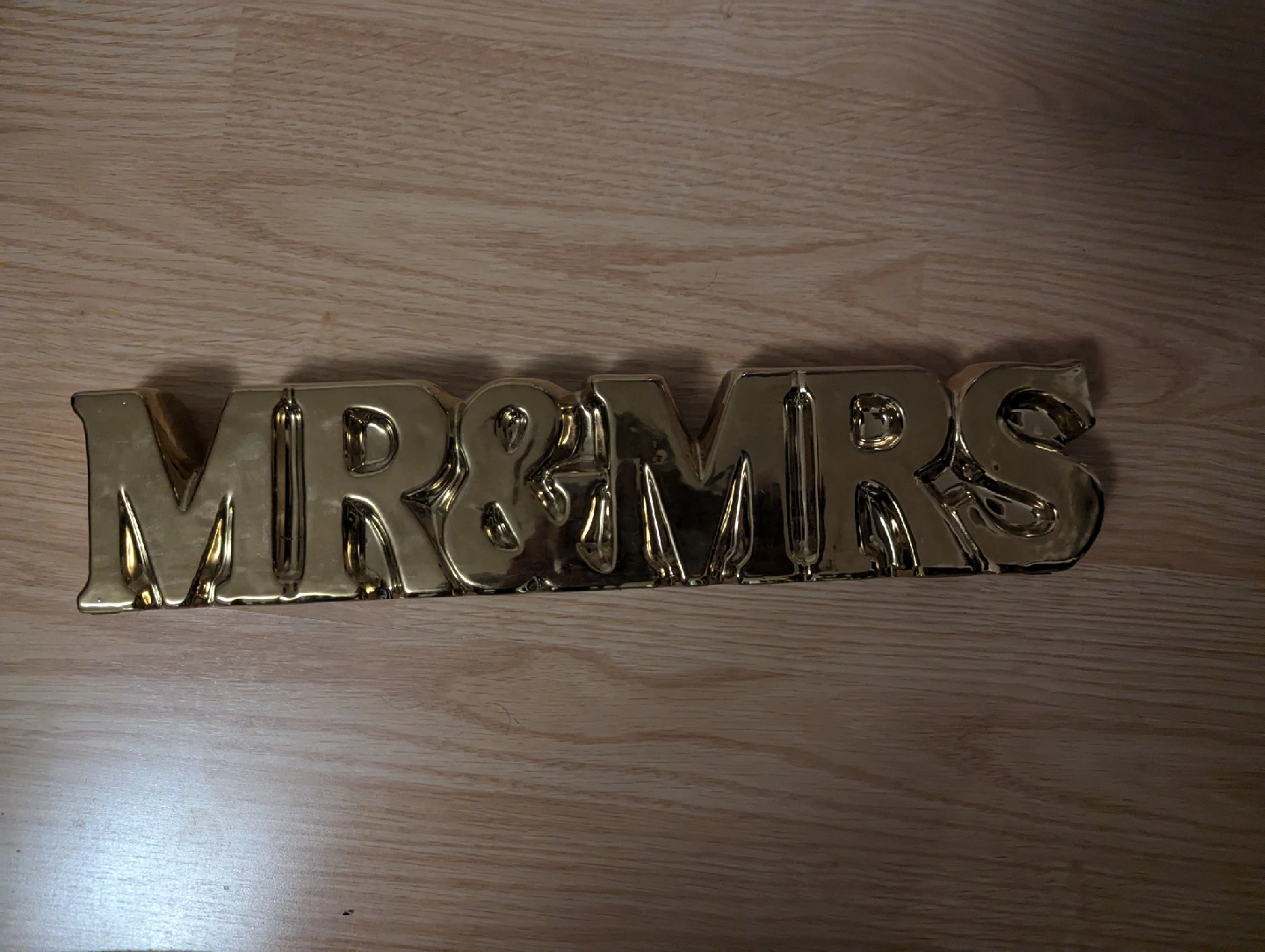 Selling a gold 'Mr & Mrs' decoration! It's in great shape and would be perfect for a wedding or anniversary celebration